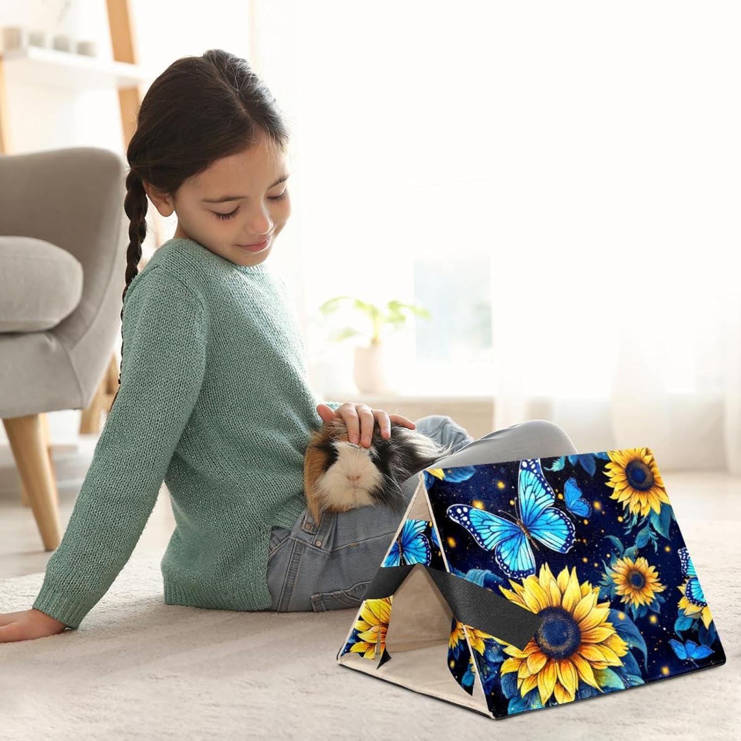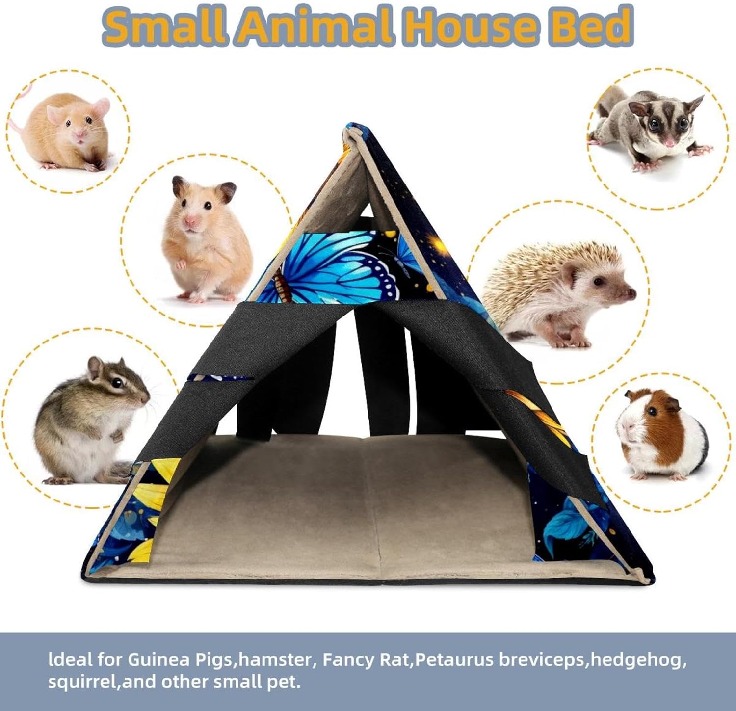 This "Little Hamster Home" is a series suitable for small pets such as hamsters, guinea pigs, rabbits, ferrets, mice, hedgehogs, and chinchillas. It is made of high-quality short velvet fabric and provides a private, warm, and comfortable hiding place, allowing your cute little animals to feel safe. Your baby can play, rest, hide, sleep, or engage in other activities in this safe haven, while also being a warm home. The size of 'Little Hamster House' is 10.2 inches long, 12 inches wide, and 8.5 inches high. The bottom is a foldable PP board, so when not in use, the hamster nest can be folded up without taking up space. By covering it with a layer of blankets, this cabin can become a comfortable hiding place. This small animal bed is made of high-quality soft short velvet fabric, with a sturdy structure that remains stable on the ground and will not collapse on its own. The ultra soft fabric makes your baby feel comfortable and warm in their own cabin. Plush curtains provide a private, warm, and comfortable resting place for your pets, allowing them to feel secure. Specially designed for guinea pigs, hedgehogs, golden bears, sugar kangaroos, hamsters, squirrels, chinchillas, small rabbits, flying dragons, and other small animals. When accidents cannot be avoided, there is no need to worry! This guinea pig bed can be hand washed and machine washed, suitable for air drying.