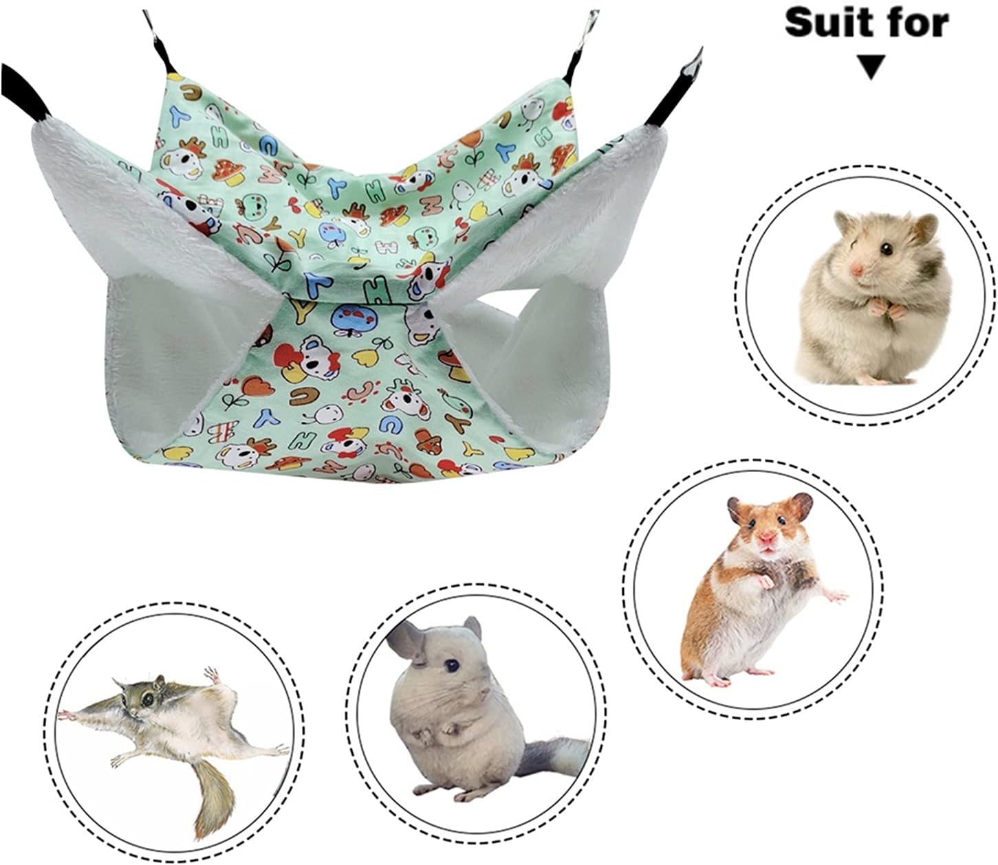 Product Name:Pet hammock product Material:plush cloth + metal buckle Product Size:Small: 20cm / 7.87 * 20cm / 7.87,Large: 35cm / 13.78 * 35cm / 13.78 Product Color:Multicolor Prompt: 1.Please check the size and color before buying. 2. Except for the Pet hammock shown in the picture, no other items are included. 3.Please note that different monitors may cause slight color differences, please understand. 4.Due to manual measurement, a small amount of error will occur. Please refer to the actual product, thank you. 5.Our shop has many styles and colors, you can check it in my shop. 6.Welcome your sharing and feedback so that we can provide you with better products and services.