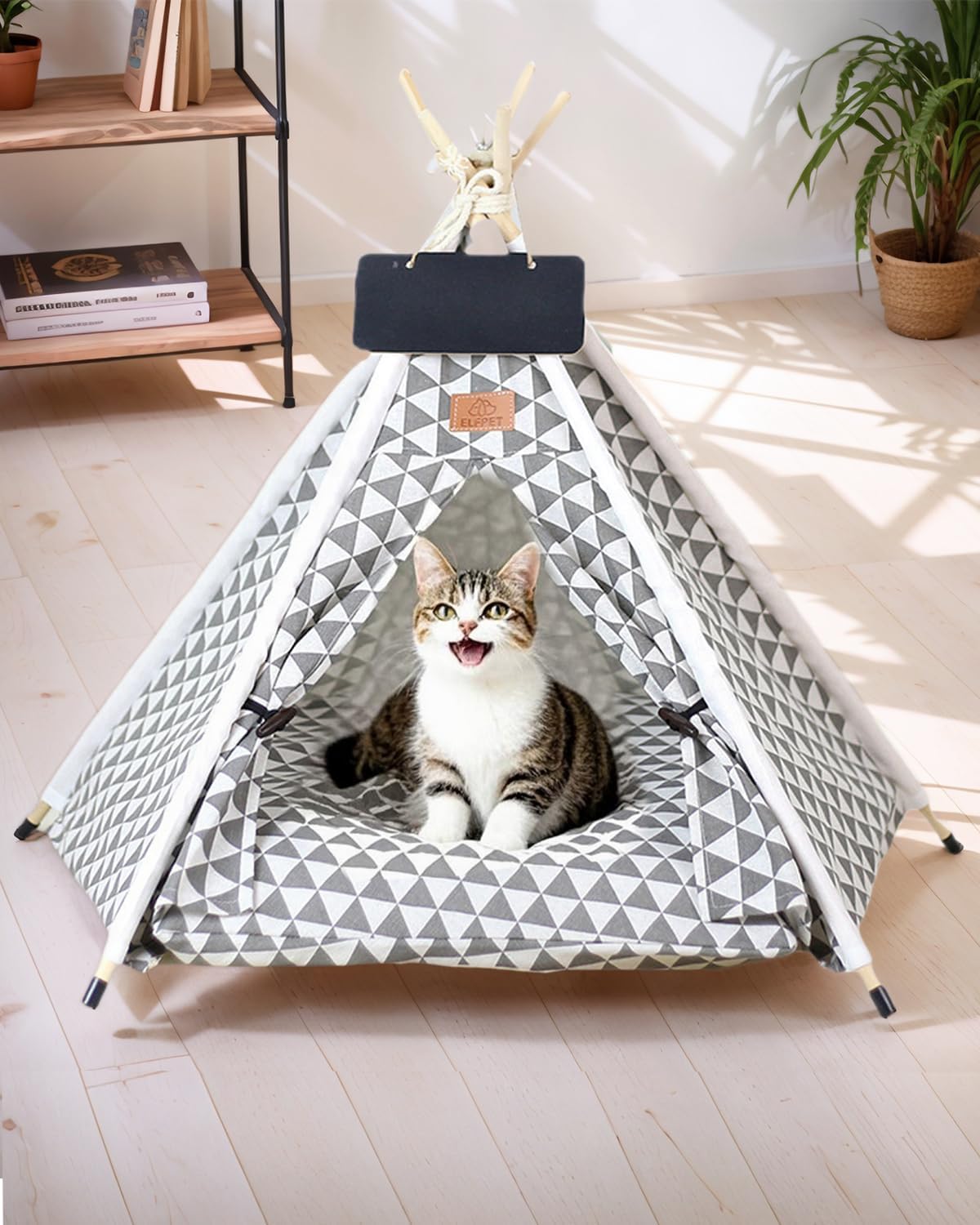 🐾 Give your furry friend a cozy and stylish retreat with the OAOAPLOS Pet Teepee Tent! Whether you're sprucing up your living room, bedroom, or looking for a fun spot in the backyard, this charming pet tent blends seamlessly into any home decor while offering your pet their own private sanctuary. 🏠 Made from high-quality canvas and soft cotton, the tent includes a thick cushion that provides ultimate comfort—ideal as a pet bed for cats, small dogs, or other small pets. Its sturdy build ensures long-lasting use, indoors or even in outdoor settings on sunny days. 🧩 Say goodbye to complicated setups! The pet teepee is designed with EASY ASSEMBLING in mind, so you can put it together within minutes—no tools required. Lightweight and compact, it’s easy to move around and fits perfectly into cozy corners, making it an excellent dog house alternative for pets who love their personal space. 🌿 Stylish and functional, this indoor and outdoor pet tent is perfect for pet-loving families who want to add a touch of flair to their home while giving their pets a snug and secure place to rest.