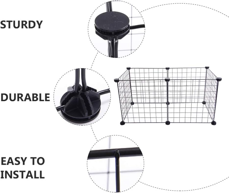Description This is a practical and convenient pet fence while you are from home. It is made of premium iron material, design creates a safe place for your pet. A Large capacity design, it will provide enough space for pet's sleeping, frolicking and other activities.Features- Color: black- Material: plastic;iron- Size: 35.00X35.00X10.00cm;13.76X13.76X3.93in- Made of , which is safe and , easy to install and use.- It is and sturdy for a long term use. You can assemble it into the shape you want at will.- Designed with iron mesh so that you can see your lovely pet outside the cage.- It is suitable for installing indoor or outdoor, portable for convenient for transportation.- Can be a great for your friend who is a pet owner.Package Including 6 x fences 12 x joints