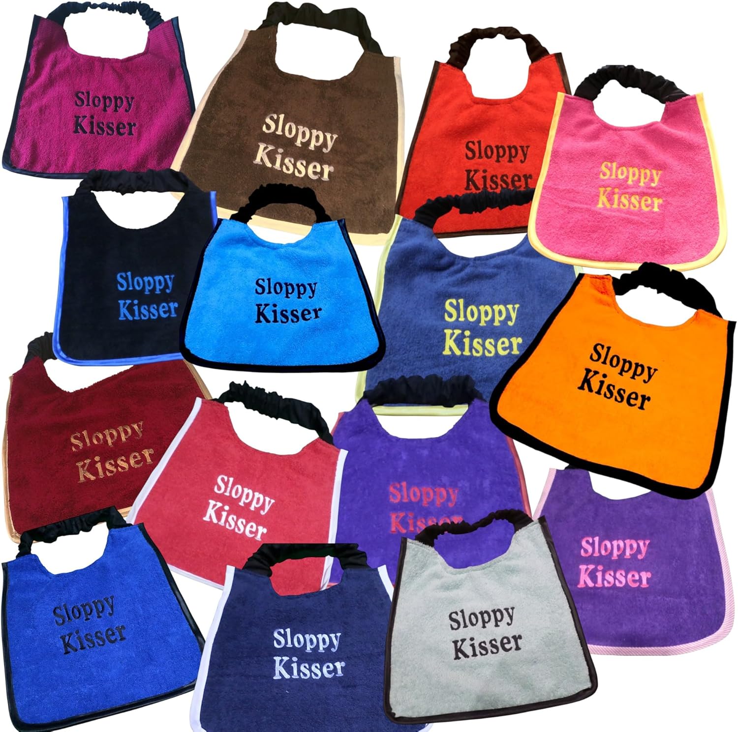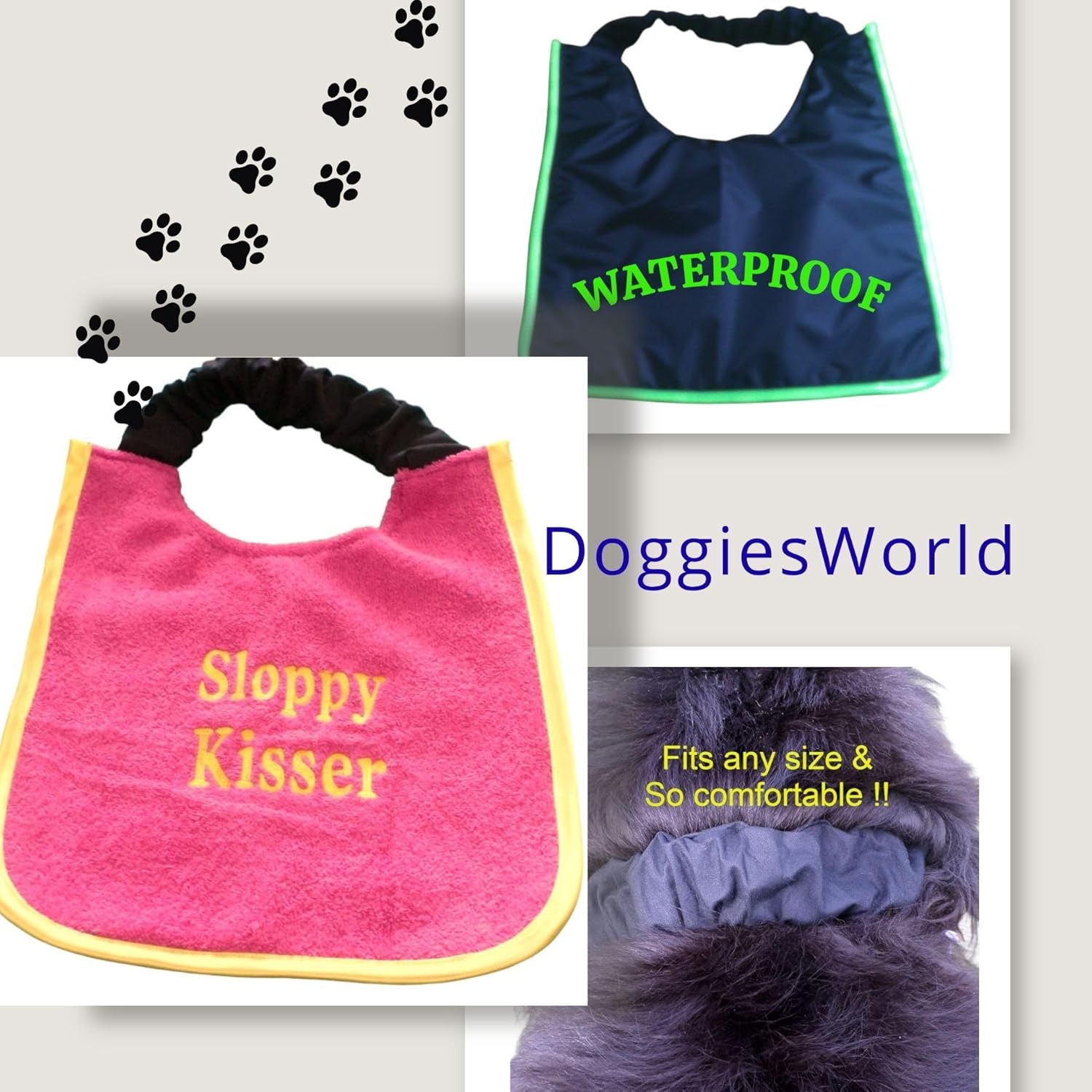 Elevate your pet's style and comfort with our customizable dog drooling bib. Say goodbye to messy meal times and hello to a cleaner, more fashionable pup. Here's what makes our bibs stand out: Personalization: Your dog's unique style deserves a bib to match. Choose from a wide array of bib colors and wording colors to create a truly one-of-a-kind look. Elegant & Comfortable: Crafted for both fashion and function, our bibs offer an elegant touch while keeping your pet clean and comfortable. They're designed to make your furry friend look their best. Superior Quality: We've got your back – literally! Our bibs feature a 100% waterproof backing, ensuring your pet stays dry and clean. Plus, they're a breeze to clean with both machine and hand washing options. Universal Fit: The elastic neck strap is designed to fit all dog sizes and breeds, ensuring a snug and secure fit. You can even choose your preferred size when placing your order. Color Choices: Carefully select your colors to create a vibrant contrast that suits your dog's unique style. Please note that this bib cannot be personalized with a name and is sold as shown in the listing. It's no wonder this bib is one of our top sellers - after all, who can resist a 'SLOPPY KISSER'? Thank you for choosing our bibs; your dog will undoubtedly appreciate the added style, comfort, and cleanliness. Woof Woof!