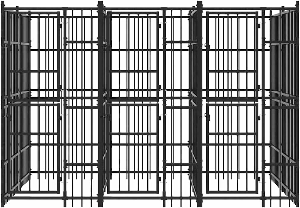 This versatile dog kennel features multiple uses: playing, exercising, training, or simply keeping your dog safe. It will be the perfect play paradise for your furry friends!This dog kennel provides ample exercise space. The walls of steel bars help prevent mischief and unexpected accidents while enabling ventilation. Thanks to the sturdy powder-coated steel construction, this dog kennel is durable and built to last. The hinged door with a lockable latch system ensures extra security and safety for your dogs.Color: BlackMaterial: Powder-coated steelOverall dimensions: 113.4″ x 75.6″ x 78.7″ (L x W x H)Door size: 19.7″ x 70.9″ (W x H)With doorsLockable latch systemAssembly required: Yes