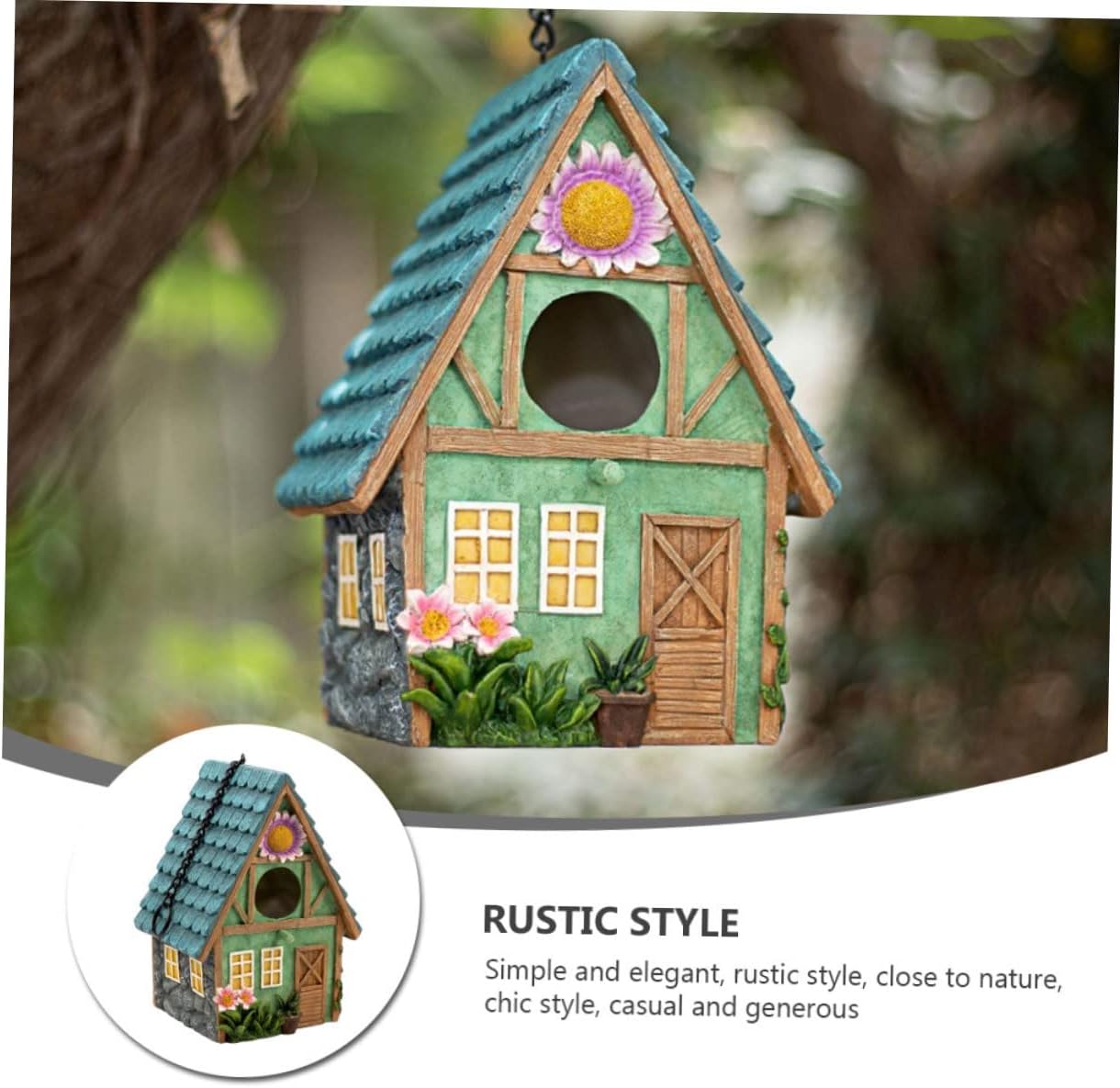 Package Include Characteristics -Size: 21.40X14.20X11.50cm/8.41X5.58X4.52in outside bird house -Color:Multi birdhouse craft decor -Hook style: Random style garden bird house -Material: Resin decorative bird houses -Made with , strong and breathable, not easily deformed bird nesting house. -It can be hung from a tree branch or hooked on your porch decorative birdhouse. -This bird hut is super easy to dangle inside or outside your home. bird house for decorating -This provides a hideaway for birds who are escaping predators and a sheltered warm place for birds from cold biting winds, rain or snow resin bird house. -Simple and elegant, rustic style, , chic style, casual and generous, giving you peace and closeness to nature bird house ornaments.Goods Descriptionbird nesting house If you just want to decorate your room, you can buy some beautiful flowers and put it on this birdhouse.hanging bird nests And also you can keep a bird in your garden.decorative birdhouse want to decorate your garden? want to find a warm house for your lovely bird? This multifunctional product is suitable for decorating the room and keeping a bird