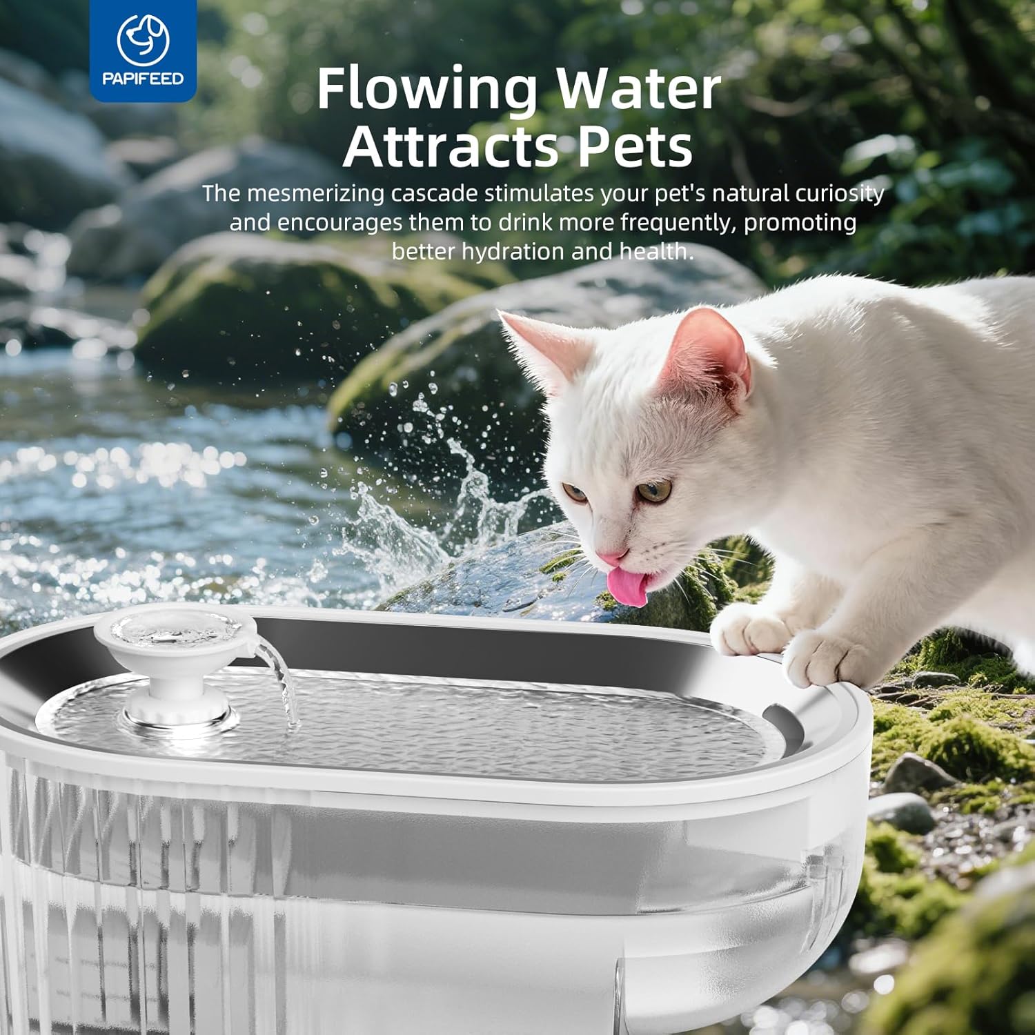 Cat Water Fountain Stainless Steel with a Silicone Mat and 10 PCS Replacement Filters & 4 PCS Replacement Pre-Filter White