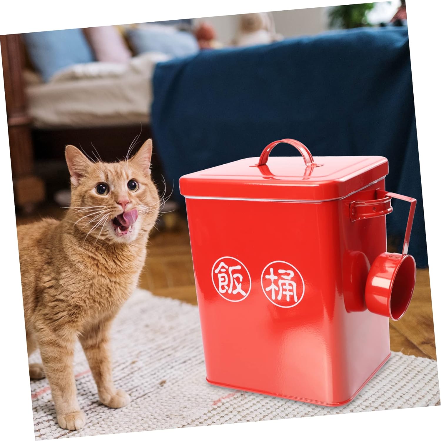 Package List 1 x storage tank with spoon Characteristics -Color: Red Cat Food Bucket. -Size: About 23.00X16.00X24.00cm/9.04X6.29X9.43inch Household Pet Food Holder. -Material: Galvanized steel Cat Storage Container. -With large storage capacity, it can help you store large quantity of pet food in one time Barrel. -Let your dog or cat enjoy it's every meal with fresh food storing by our food bucket Dog Food Holder. - and for secure dry food storage, which can make your pets' food fresh for long time Sealed Storage Container. - and solid material is well-made, fall and a strong bearing capacity Cat Food Holder. -It is simple , but very in use, which brings great convenience to you Pet Food Bucket.Goods DescriptionSealed Dog Food Bucket Are you looking for a but pet food bucket? Are you looking for a sturdy, trustworthy tool that can do multiple tasks at the same time? If so, then you must take a look at our sturdy pet food bucket, which can meet your needs