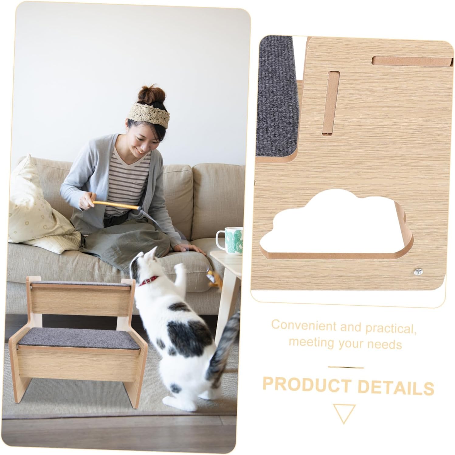 Package Include 1 x pet ladder Characteristics -Product Info:Wooden dog staircase - Easy to Carry: You can carry it when travelling with your lovely dogs pet steps for small dogs. -Size:35.00X30.00X29.00cm/13.76X11.79X11.40in small dogs dog stairs -Material:Wood dog stair -match Style: The pet step features style, so any home style can be perfectly integrated small dog stairs. - Fine workmanship: this pet stair can be applied for a lasting time and many times dog stairs indoor. -Color:Multi dog steps - Pet stair: features the simple installation and convenient storage, your pet can play and jump with it dog steps for small dogs. - Portable Design:This pet steps ladder is portable and lightweight, which is easy for carrying when you are traveling with your pets Dog Stairs.Goods Informationpet climbing stairs The safe material not only adds a touch of luxury but also provides a non-slip surface for pets to confidently climb.dog staircase The Pet Staircase Climbing Steps for Cats and Dogs is a must-have for pet owners who want to provide their furry friends with easy access to elevated surfaces.puppy steps for small dogs Whether it's helping an older pet reach their favorite spot or assisting a pet with joint issues, this staircase is designed to make their lives easier