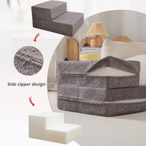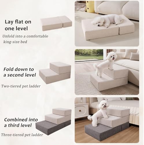 Introducing our Foldable Pet Ramp/Stairs, designed with senior pets in mind. Crafted from premium Snowflake Fleece Fabric, this versatile ramp provides a safe and comfortable way for your furry friends to access higher surfaces without the strain of jumping. Its thoughtful design is perfect for pet owners who want to enhance their pets' mobility, whether it's getting up on the couch, bed, or into the car. With unfolded dimensions of 66 cm (L) × 40 cm (W) × 16 cm (H), this ramp is spacious enough to accommodate pets of various sizes. When not in use, simply fold it down to a compact size of 40 cm (L) × 40 cm (W) × 32 cm (H), making it easy to store or transport. Weighing only 2.3 kg, it’s lightweight yet durable, ensuring stability as your pet climbs. The removable cover allows for effortless cleaning, whether you choose to vacuum, hand wash, or machine wash it. Maintaining the ramp's cleanliness is straightforward, as it can be air-dried quickly for continued use. Just remember to wash it gently in water below 30°C and avoid harsh cleaning methods. Available in elegant Off-White and Gray colors, this pet ramp seamlessly fits into any home decor. Its sleek look combined with practicality makes it a valuable addition to your pet care routine. Elevate your pet's quality of life today with our Foldable Pet Ramp/Stairs, blending convenience with comfort for your cherished companions.