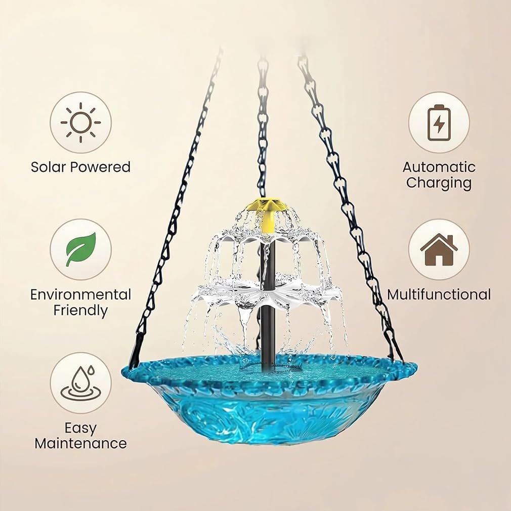 Package List: 1PC * Solar Cascade Hanging Bird Bath Fountain