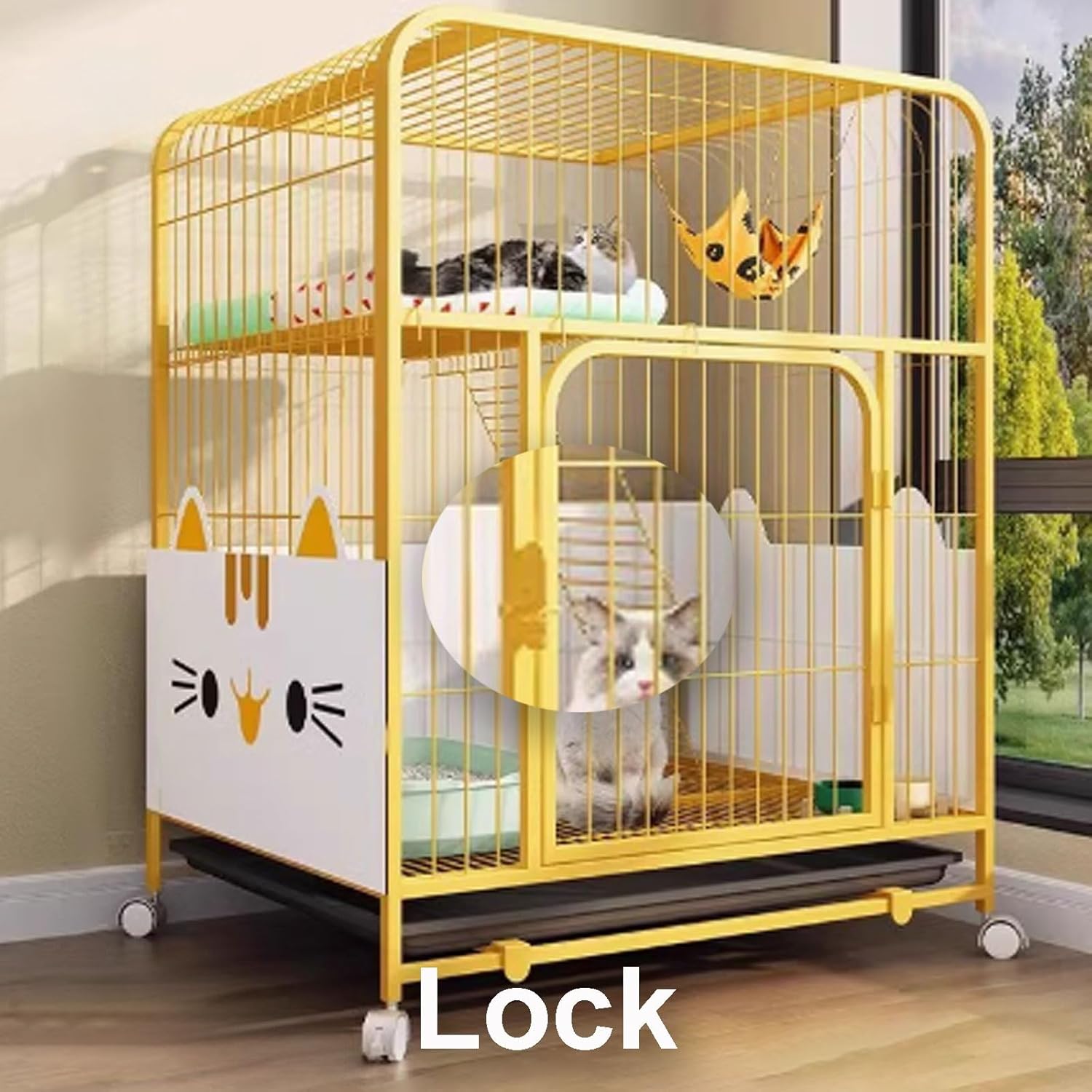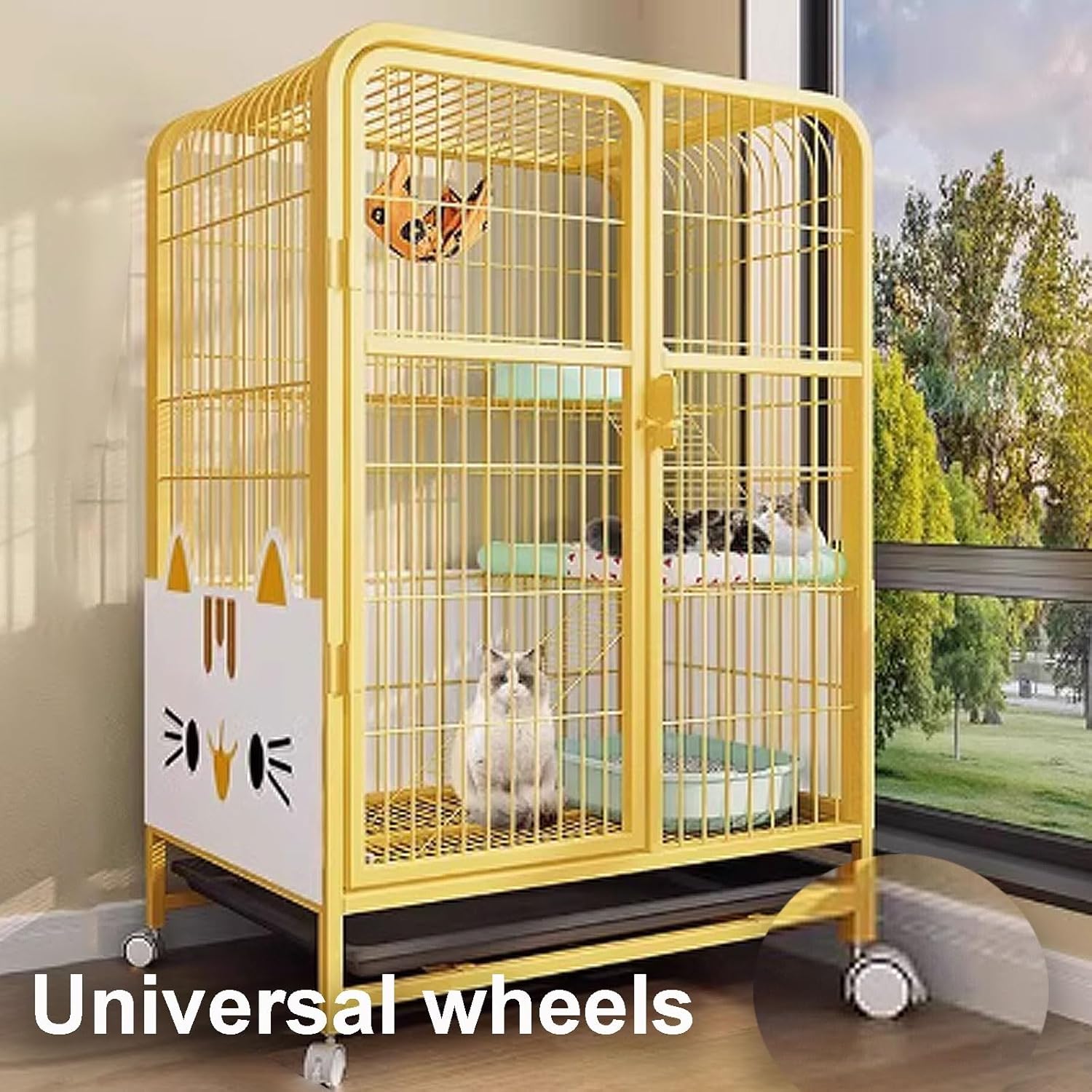 GUQASDV cat cages indoor will be a nice choice for any cat lovers to provide opportunities for your sweety cats to jump, climb, and relaxDense footpads: with dense footpads, catio indoor cat enclosure on wheels will not make any hurts easily even for small cats and not trapped into trayEasy to clean: the pull-out tray is made of high-quality PVC which is not easy to deform, cat playpen with top cover is really easy to clean just need to pull it outEasy to Assemble: with simple assembly instructions, cat crates for indoor cats will set up in 20 minutes which is very important as you don't want to be wasting tons of time while enjoying time offMaterial: ironColor: yellowSize: 70x55x75cm, 78x55x100cm, 78x55x108cm, 78x54x137cmNote: 01 There may be a 3-5cm error in manual measurement which is normal, please understand02 Only the cage is sold, no other accessories are included03 Due to different displays or shooting environments, the product may have color differences, please understand