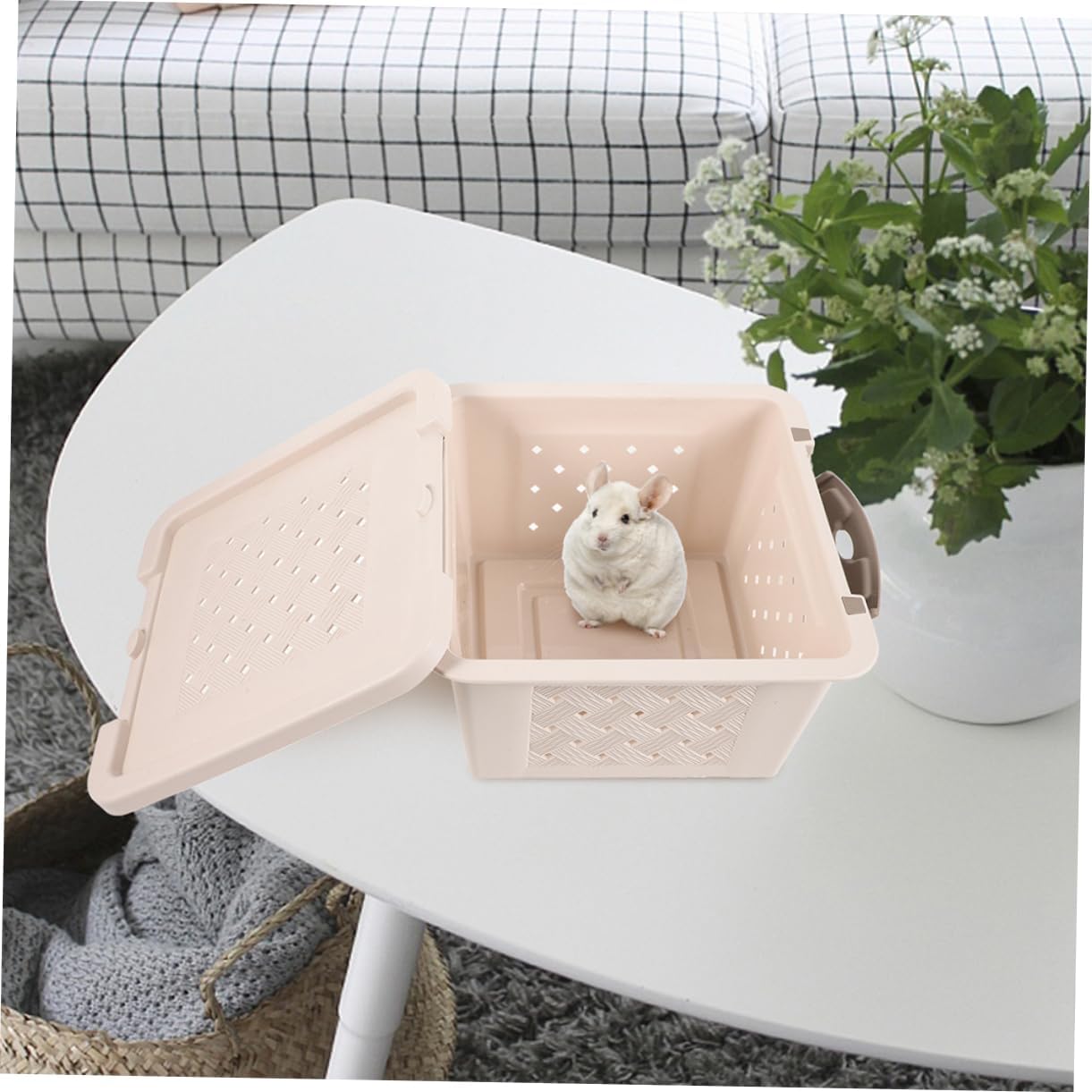 Package List 2 x hamster carriers Features -Color:Beige hamster carrier cage -Size:22.00X22.00X12.00cm/8.65X8.65X4.72in pet carrying box -Material:Plastic travel pet cage -Durable material: This pet outdoor carrying case is made of stable plastic material, which is comfortable for your travel cage.Goods Descriptiontravel pet cage Are you looking for a professional Hamster Cage? Are you in search of a sturdy, trustworthy Hamster Cage that can help you travel with your lovely hamster? , ! Our professional Hamster Travel Box must meet your needs