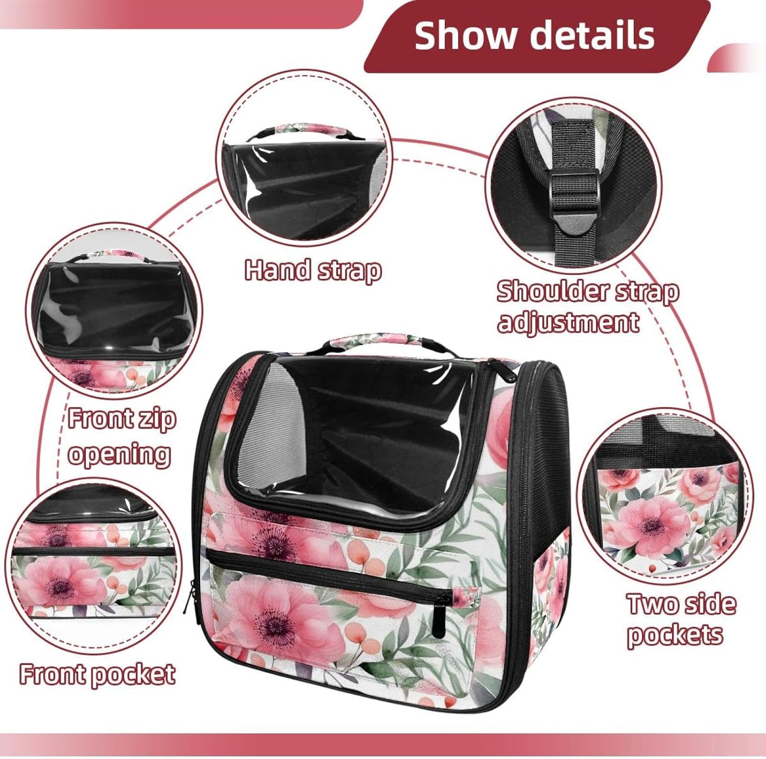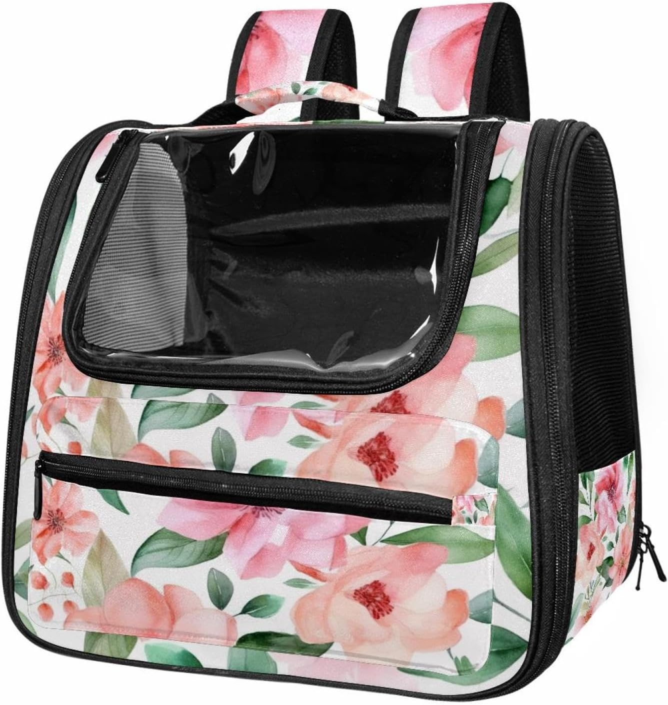 Well made: Cat Backpack Carrier is made from 900D oxford fabric, pp webbing, velvet, nylon, which is very sturdy, environmentally friendly and breathable. Not easily scratched by pet’s claws, pet backpack carrier is SAFETY & ANTI-SCRATCH. The back padding will give you a comfortable and breathable experience. Ventilated Backpack: With a breathable window in the front, this pet backpack allows cats to enjoy the sun without feeling stuffy. There are two side pockets and one big front pocket, and you can take foods or toy for your kitten pet. It is big enough for cat to turn around, and there are side pockets and hook holes, you will enjoy the greatest convenience when taking your cat out. Perfect size: Cat carrier is 15.75x9.84x13.78in/40x25x35cm. Fits most small/medium sized cat, dog, and pet. Quality fleece bed provide a comfortable place for your pet. Lightweight and easy to carry to all places. Built-in harnesses keep your naughty friends from escaping. Removable cosy mat for easier cleaning and let your pet enjoy it inside. Easy to carry: The adjustable shoulder strap of pet carrier bag help you hands-free carrying and makes it the most safe and convenient pet carrier bag for your travel. Seat belt design provide pets with safety protection throughout the trip. Pad protection keep your pets comfortable during travel. Unique Design: Innovative inside graphic design gives you a stereoscopic 3D visual experience. You also send us the photos you interest to make your unique dog or cat carrier. Pet bag is also a amazing gift for pet lover.