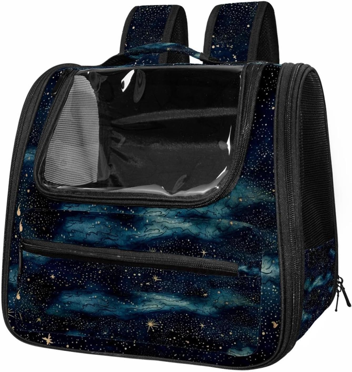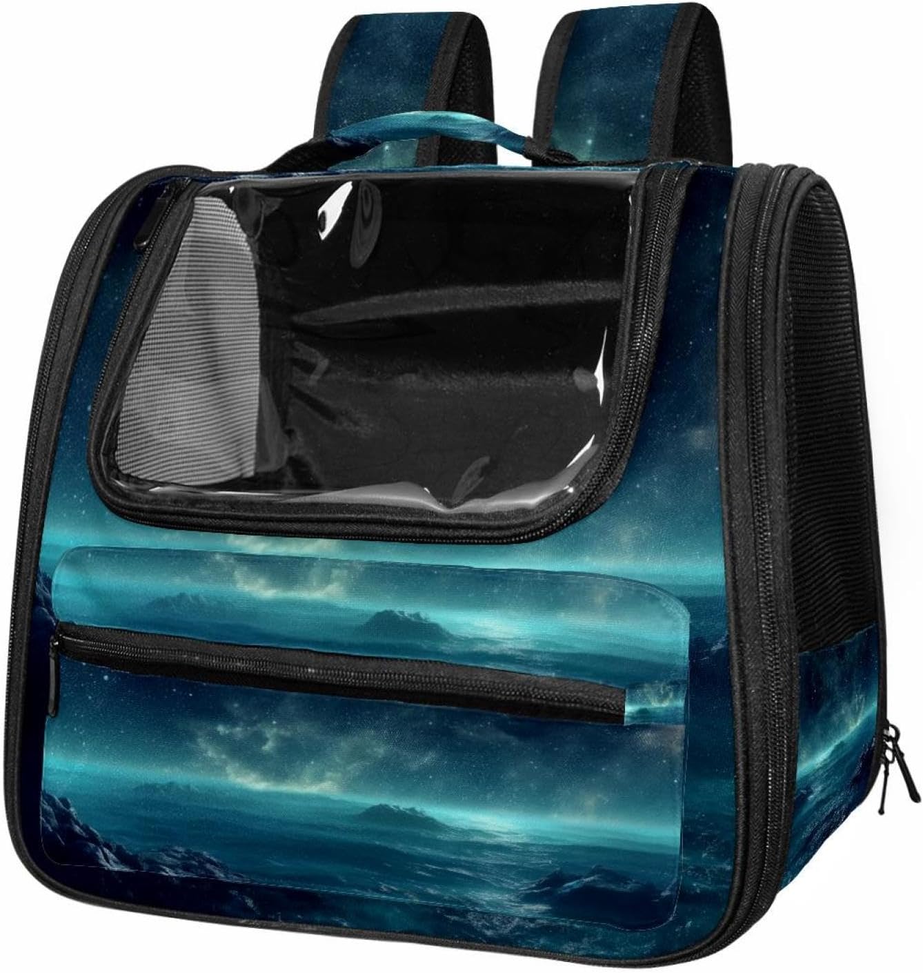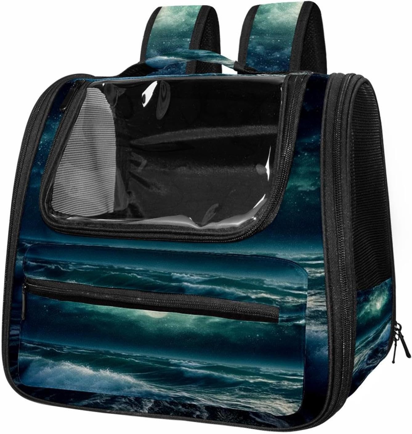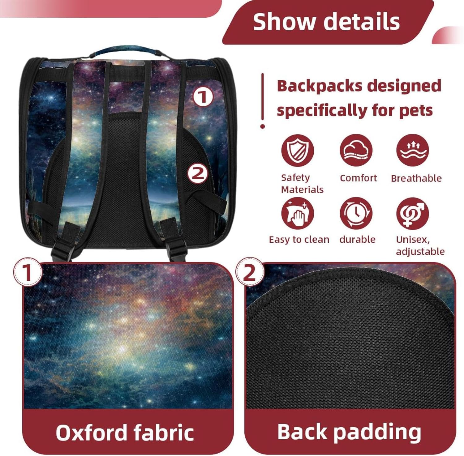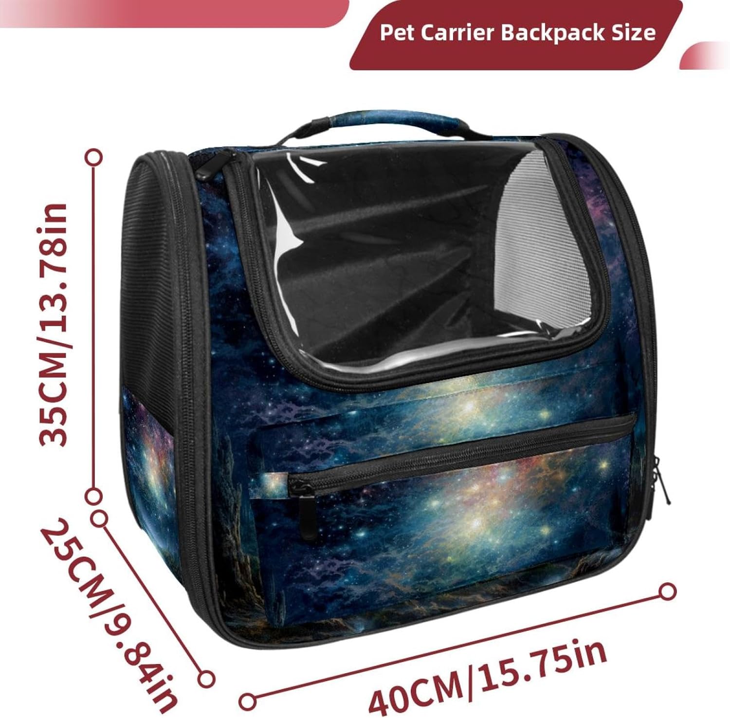 Well made: Cat Backpack Carrier is made from 900D oxford fabric, pp webbing, velvet, nylon, which is very sturdy, environmentally friendly and breathable. Not easily scratched by pet’s claws, pet backpack carrier is SAFETY & ANTI-SCRATCH. The back padding will give you a comfortable and breathable experience. Ventilated Backpack: With a breathable window in the front, this pet backpack allows cats to enjoy the sun without feeling stuffy. There are two side pockets and one big front pocket, and you can take foods or toy for your kitten pet. It is big enough for cat to turn around, and there are side pockets and hook holes, you will enjoy the greatest convenience when taking your cat out. Perfect size: Cat carrier is 15.75x9.84x13.78in/40x25x35cm. Fits most small/medium sized cat, dog, and pet. Quality fleece bed provide a comfortable place for your pet. Lightweight and easy to carry to all places. Built-in harnesses keep your naughty friends from escaping. Removable cosy mat for easier cleaning and let your pet enjoy it inside. Easy to carry: The adjustable shoulder strap of pet carrier bag help you hands-free carrying and makes it the most safe and convenient pet carrier bag for your travel. Seat belt design provide pets with safety protection throughout the trip. Pad protection keep your pets comfortable during travel. Unique Design: Innovative inside graphic design gives you a stereoscopic 3D visual experience. You also send us the photos you interest to make your unique dog or cat carrier. Pet bag is also a amazing gift for pet lover.