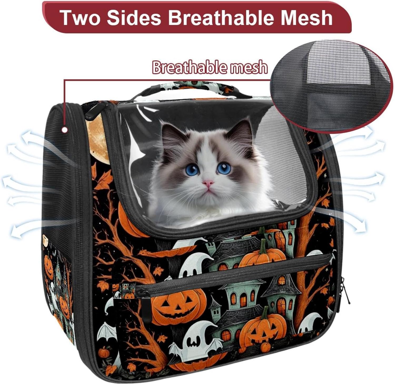 Well made: Cat Backpack Carrier is made from 900D oxford fabric, pp webbing, velvet, nylon, which is very sturdy, environmentally friendly and breathable. Not easily scratched by pet’s claws, pet backpack carrier is SAFETY & ANTI-SCRATCH. The back padding will give you a comfortable and breathable experience. Ventilated Backpack: With a breathable window in the front, this pet backpack allows cats to enjoy the sun without feeling stuffy. There are two side pockets and one big front pocket, and you can take foods or toy for your kitten pet. It is big enough for cat to turn around, and there are side pockets and hook holes, you will enjoy the greatest convenience when taking your cat out. Perfect size: Cat carrier is 15.75x9.84x13.78in/40x25x35cm. Fits most small/medium sized cat, dog, and pet. Quality fleece bed provide a comfortable place for your pet. Lightweight and easy to carry to all places. Built-in harnesses keep your naughty friends from escaping. Removable cosy mat for easier cleaning and let your pet enjoy it inside. Easy to carry: The adjustable shoulder strap of pet carrier bag help you hands-free carrying and makes it the most safe and convenient pet carrier bag for your travel. Seat belt design provide pets with safety protection throughout the trip. Pad protection keep your pets comfortable during travel. Unique Design: Innovative inside graphic design gives you a stereoscopic 3D visual experience. You also send us the photos you interest to make your unique dog or cat carrier. Pet bag is also a amazing gift for pet lover.