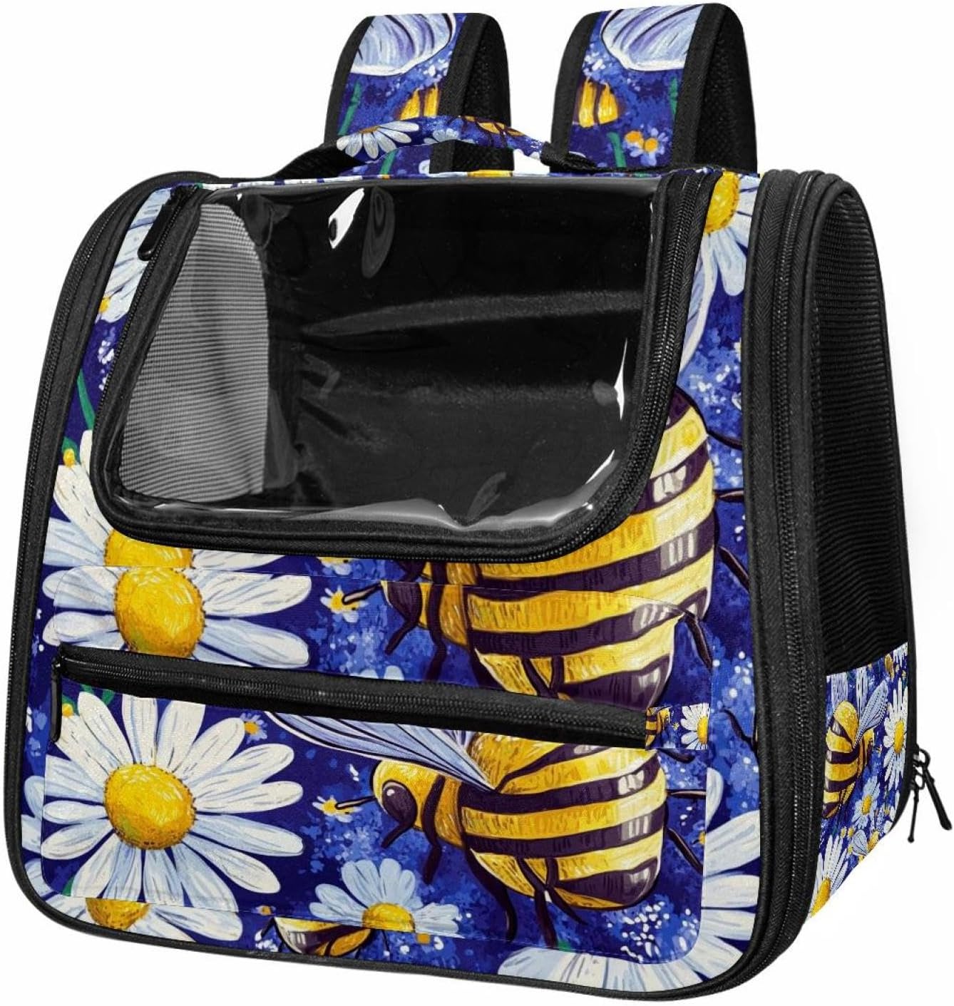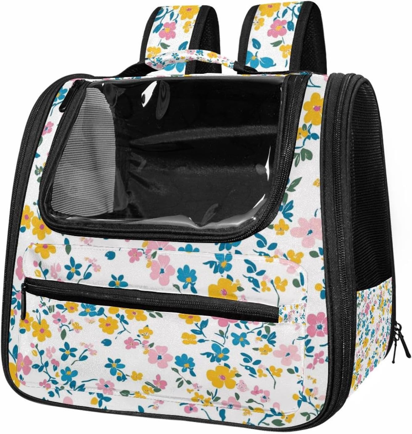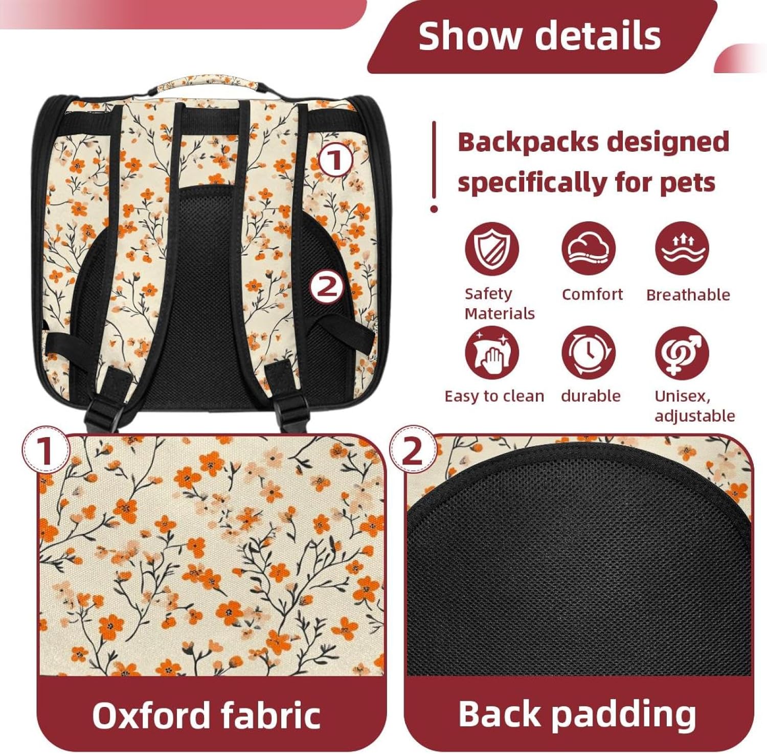 Well made: Cat Backpack Carrier is made from 900D oxford fabric, pp webbing, velvet, nylon, which is very sturdy, environmentally friendly and breathable. Not easily scratched by pet’s claws, pet backpack carrier is SAFETY & ANTI-SCRATCH. The back padding will give you a comfortable and breathable experience. Ventilated Backpack: With a breathable window in the front, this pet backpack allows cats to enjoy the sun without feeling stuffy. There are two side pockets and one big front pocket, and you can take foods or toy for your kitten pet. It is big enough for cat to turn around, and there are side pockets and hook holes, you will enjoy the greatest convenience when taking your cat out. Perfect size: Cat carrier is 15.75x9.84x13.78in/40x25x35cm. Fits most small/medium sized cat, dog, and pet. Quality fleece bed provide a comfortable place for your pet. Lightweight and easy to carry to all places. Built-in harnesses keep your naughty friends from escaping. Removable cosy mat for easier cleaning and let your pet enjoy it inside. Easy to carry: The adjustable shoulder strap of pet carrier bag help you hands-free carrying and makes it the most safe and convenient pet carrier bag for your travel. Seat belt design provide pets with safety protection throughout the trip. Pad protection keep your pets comfortable during travel. Unique Design: Innovative inside graphic design gives you a stereoscopic 3D visual experience. You also send us the photos you interest to make your unique dog or cat carrier. Pet bag is also a amazing gift for pet lover.