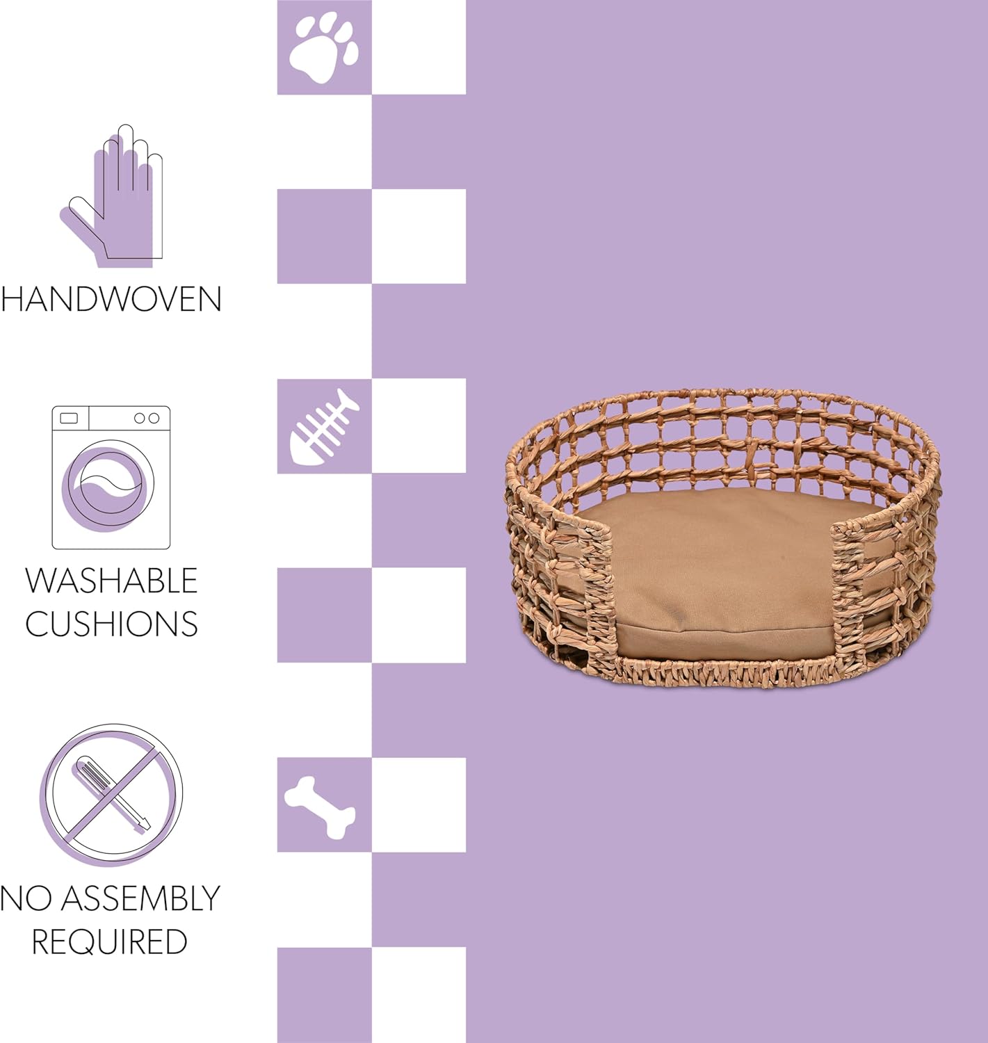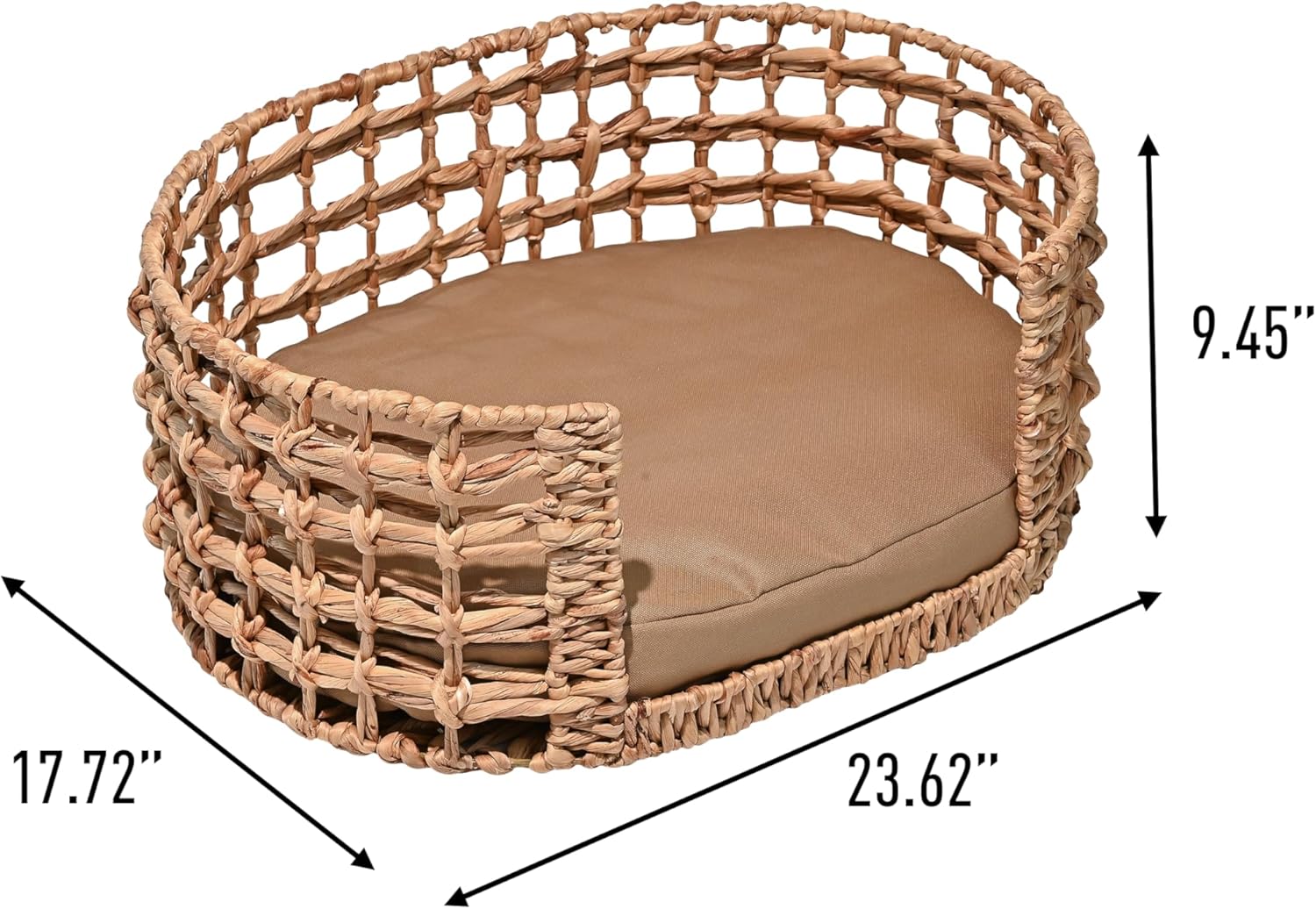 Add a touch of modern, Bohemian flair to any home with this chic and natural pet bed. Made from hyacinth fibers woven onto a metal frame, it includes a washable cushion. The light and airy design is perfect for any small or medium-sized pet.