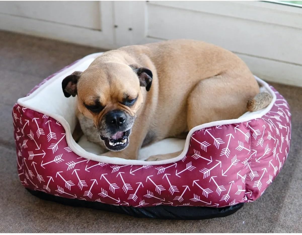 Dog Cuddler Beds 20" Cuddler Beds are ultra cozy bumper-style beds with dense cushioning and cuddly soft sherpa provides supreme comfort. Bolster bed with bumper-style cushioning Soft, cozy sherpa lining for ultimate comfort Dense poly fill for 24-hour comfort Measures 20"L x 16"W x 7.5"H Available in: Red/Black Plain, Blue Bone Print, Red Arrow Print