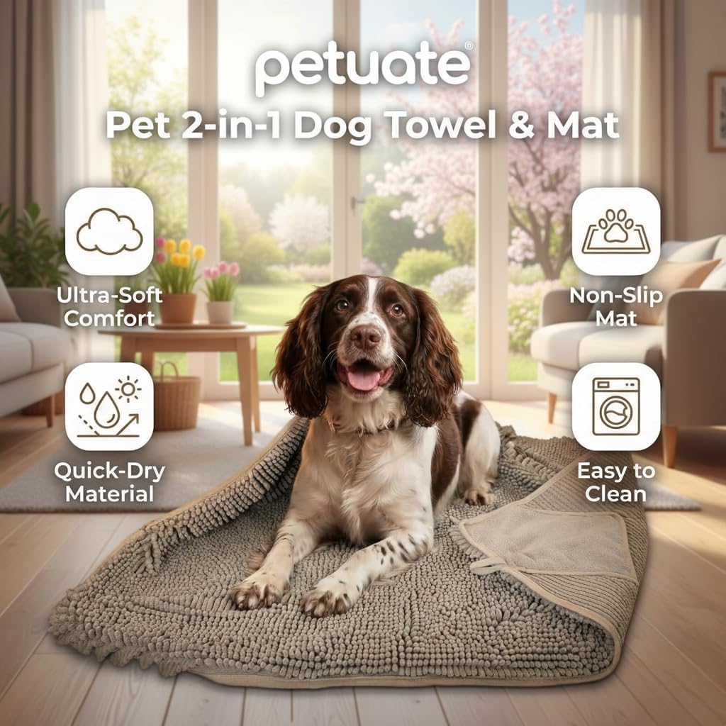 | Product Benefits | 2-in-1 functionality for drying & lounging, non-slip mat for stability, quick-drying & machine washable, fits dogs of all sizes |