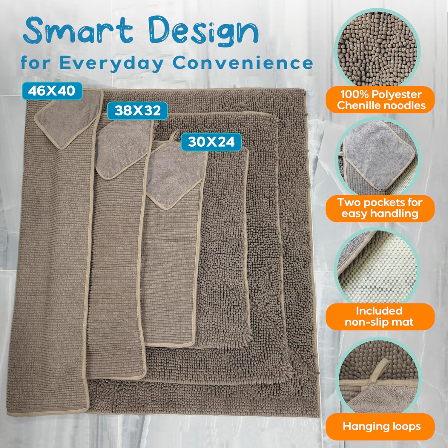 | Included Components | Chenille towel and non-slip mat |