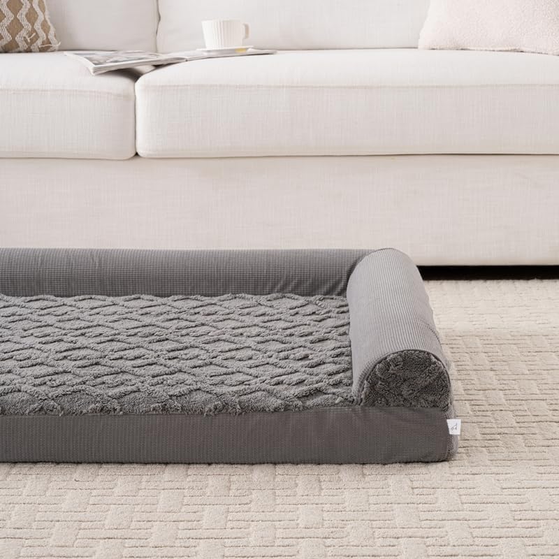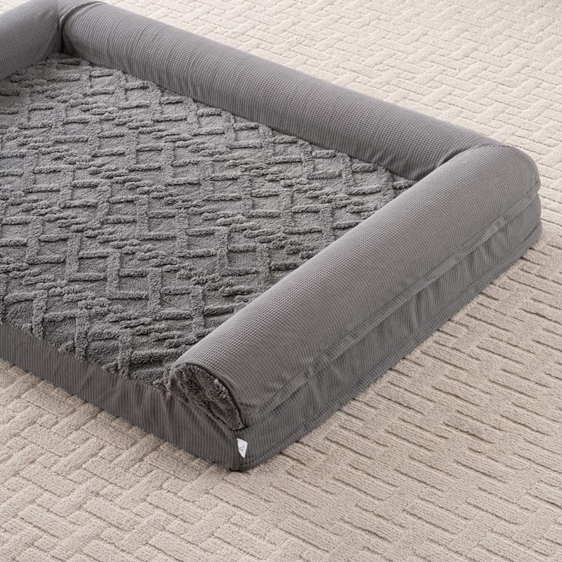 Give your beloved pet the ultimate comfort with this luxurious U-shaped orthopedic pet bed. Thoughtfully designed with raised bolsters on three sides, this bed creates a secure, nest-like environment where your furry friend can truly relax. The generous 42 x 30 x 6.5 inch dimensions provide ample space for large dogs to stretch out or multiple smaller pets to snuggle together. The plush sleeping surface and orthopedic foam filling deliver superior support, while the waterproof cover protects against accidents and spills. Practical features include a removable, machine-washable cover for easy maintenance and a non-slip bottom that keeps the bed firmly in place. The sophisticated beige color scheme and textured pattern complement any home décor. Perfect for both dogs and cats, this versatile bed can be placed on floors, in crates, or near furniture. The durable construction ensures the bed maintains its shape through regular use, making it an ideal choice for pets who need a comfortable, supportive place to rest.