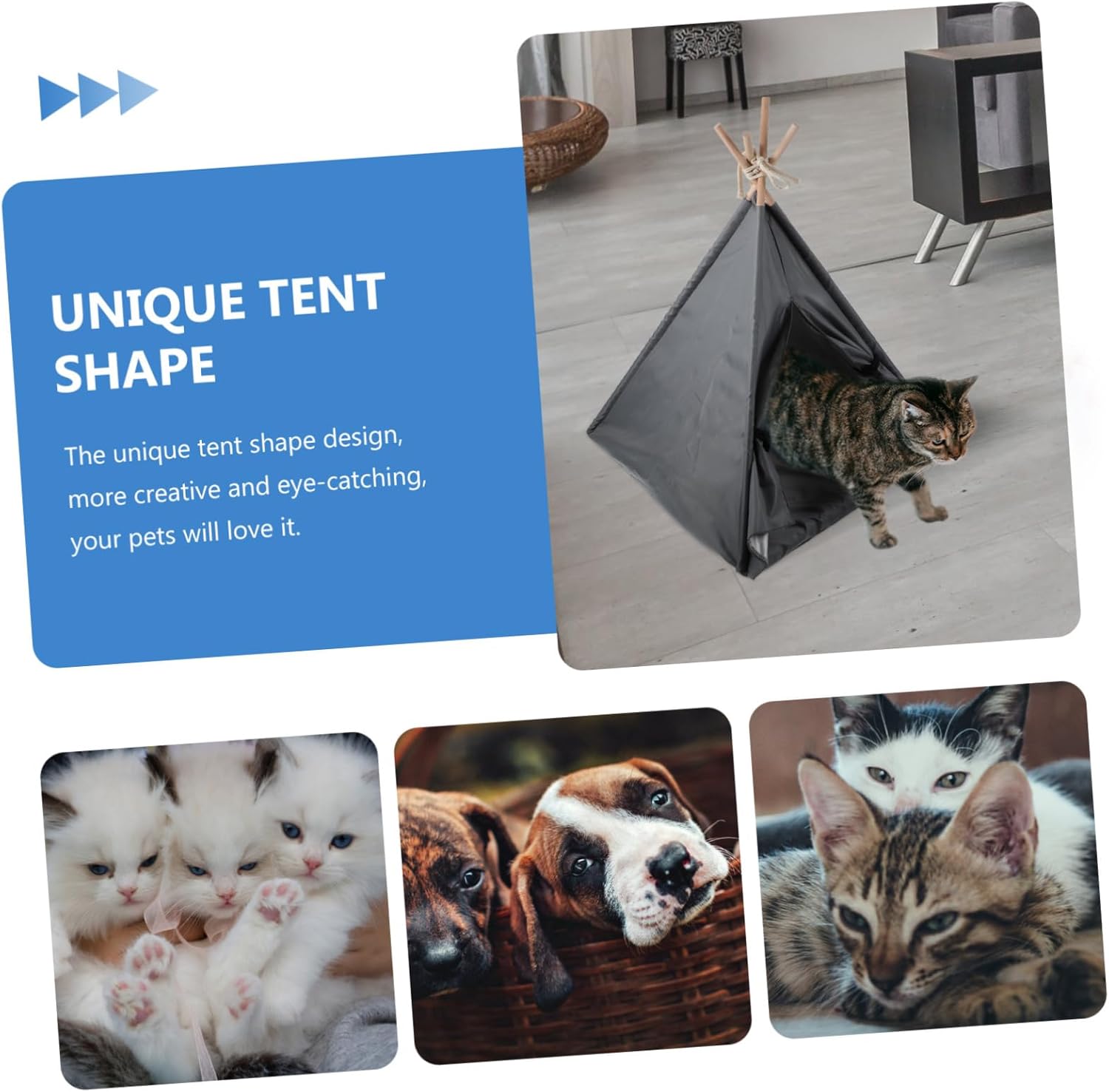 Package Include 1 x Pet Tent Characteristics -Material: Oxford cloth Puppy Supply -Color: Grey Dog Supply -Size: 40.00X40.00X50.00cm/ 15.72X15.72X19.65inch Puppy Accessory - for small dogs, as well as cats and kittens. Pets will like their nest Pet Accessory. - block external intrusion and sense of light while the dog is sleeping, so that the dog can sleep peacefully Washable Dog Tent. -Great place for pet to sleep, play and have a rest. They will the tent Household Pet Nest. -The small tent space will bring security to pets, such as dogs, cats, etc Household Pet Tent. -An all-season kennel for your pets, which is and wear-resistant Waterproof Dog Tent.Goods DescriptionPet Accessory Pet tent for small dogs and cats to rest and sleep.Washable Puppy Tent It can supply outdoor time with shade and protect pets from summer like for dogs and cats to rest and nap in balcony, patio, porch, yard.Decorative Dog Tent It is made of material for to use