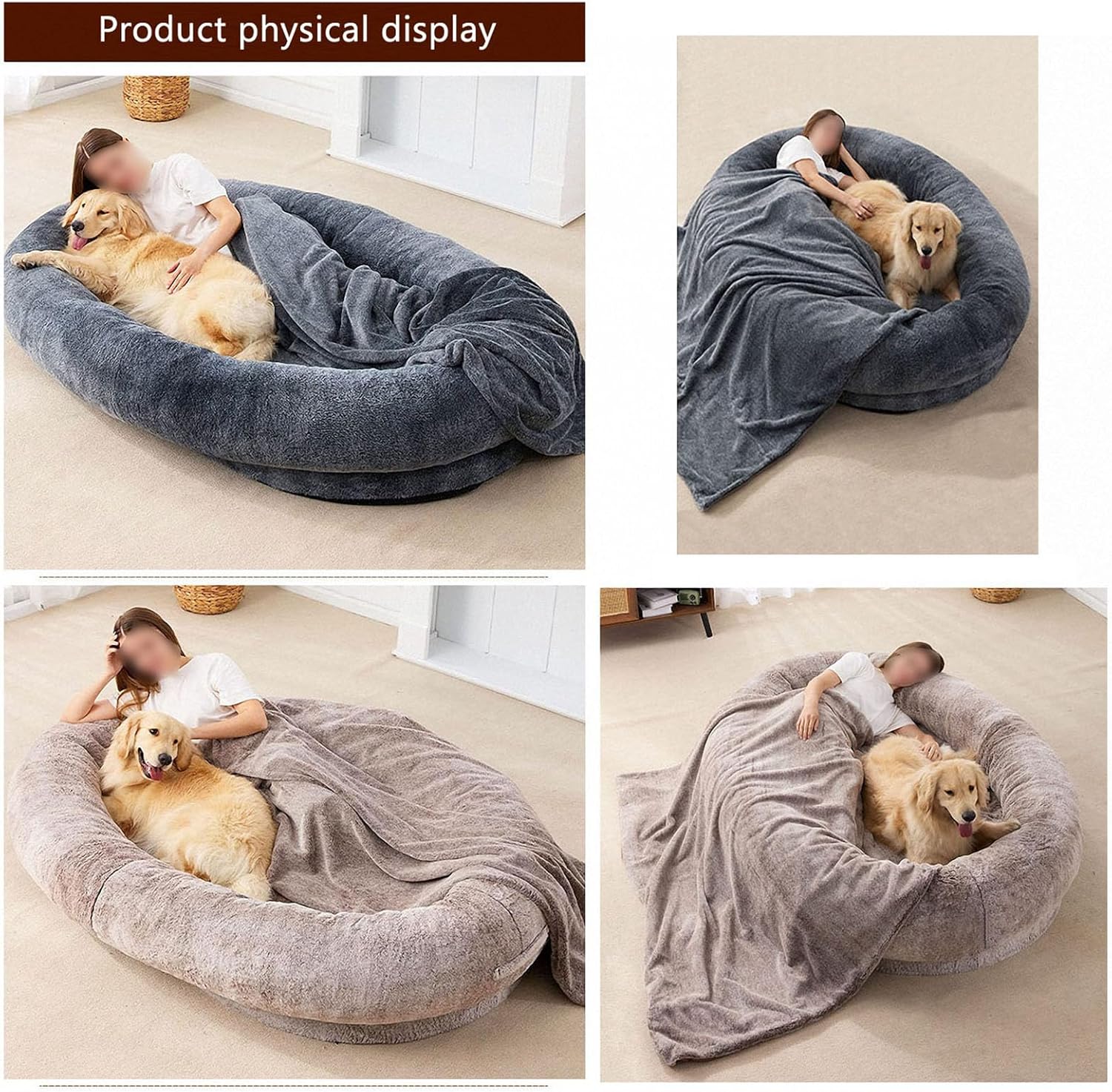 【 Product name】: dog bed for humans,Large human short plush dog bed, adult dog bed, removable and washable pet bed 【Product material】: plush + 3D sponge 【Material characteristics】: soft, warm and comfortable 【Lining material】: high elastic filling + sponge pad 【Specifications】: 5XL: outer diameter (165x100x25)CM 【Product Category】: Pet HousePlease note: We hope you can have a good sleep, but we do not bring the blankets in the pictures, so you need to prepare them yourself. 【Features】: Easy to clean, easy to move, storage design, filled with sponge, waterproof, removable design for cleaning.