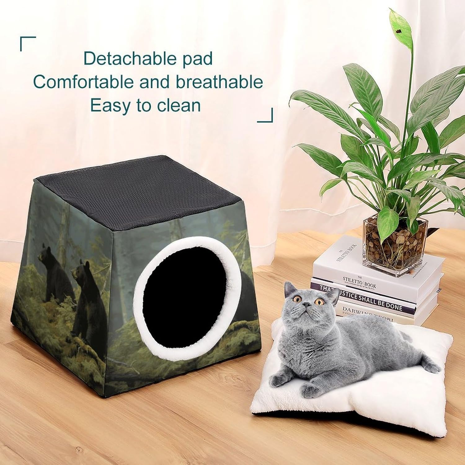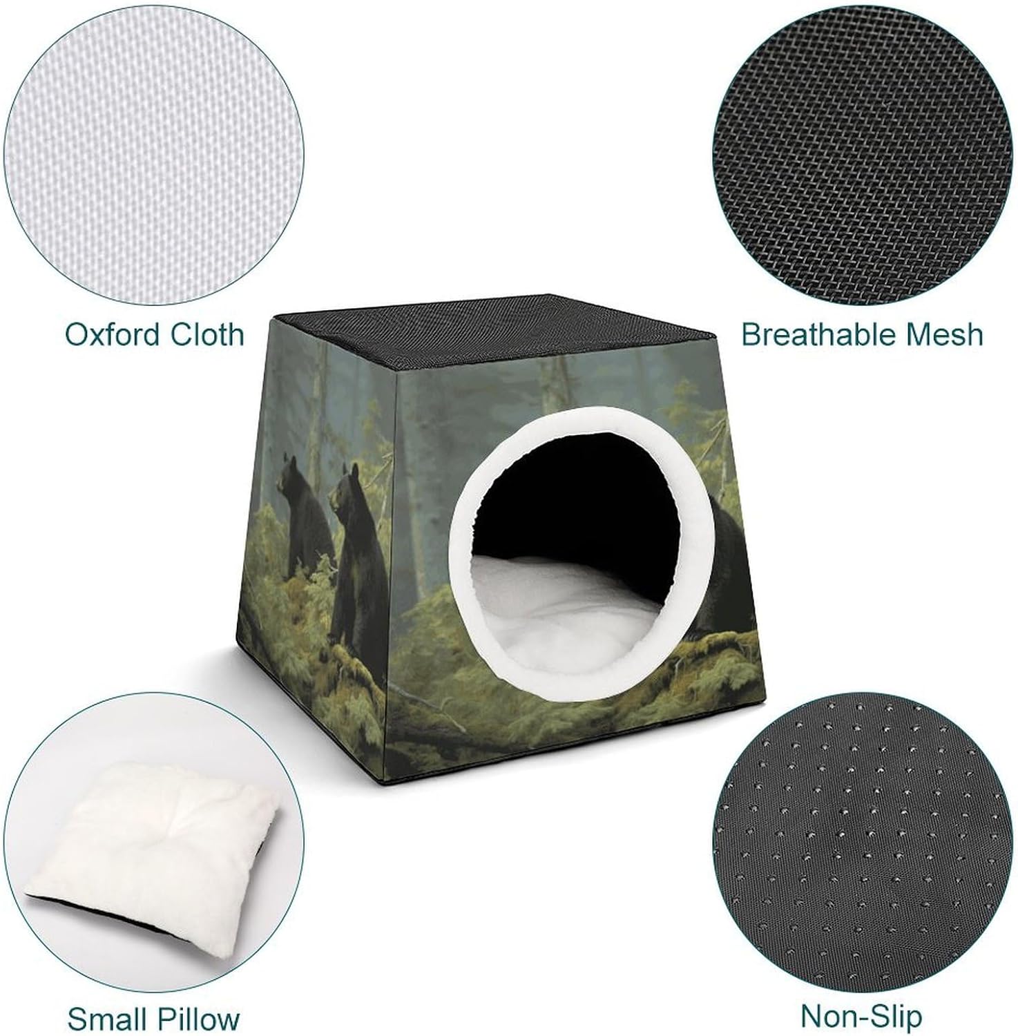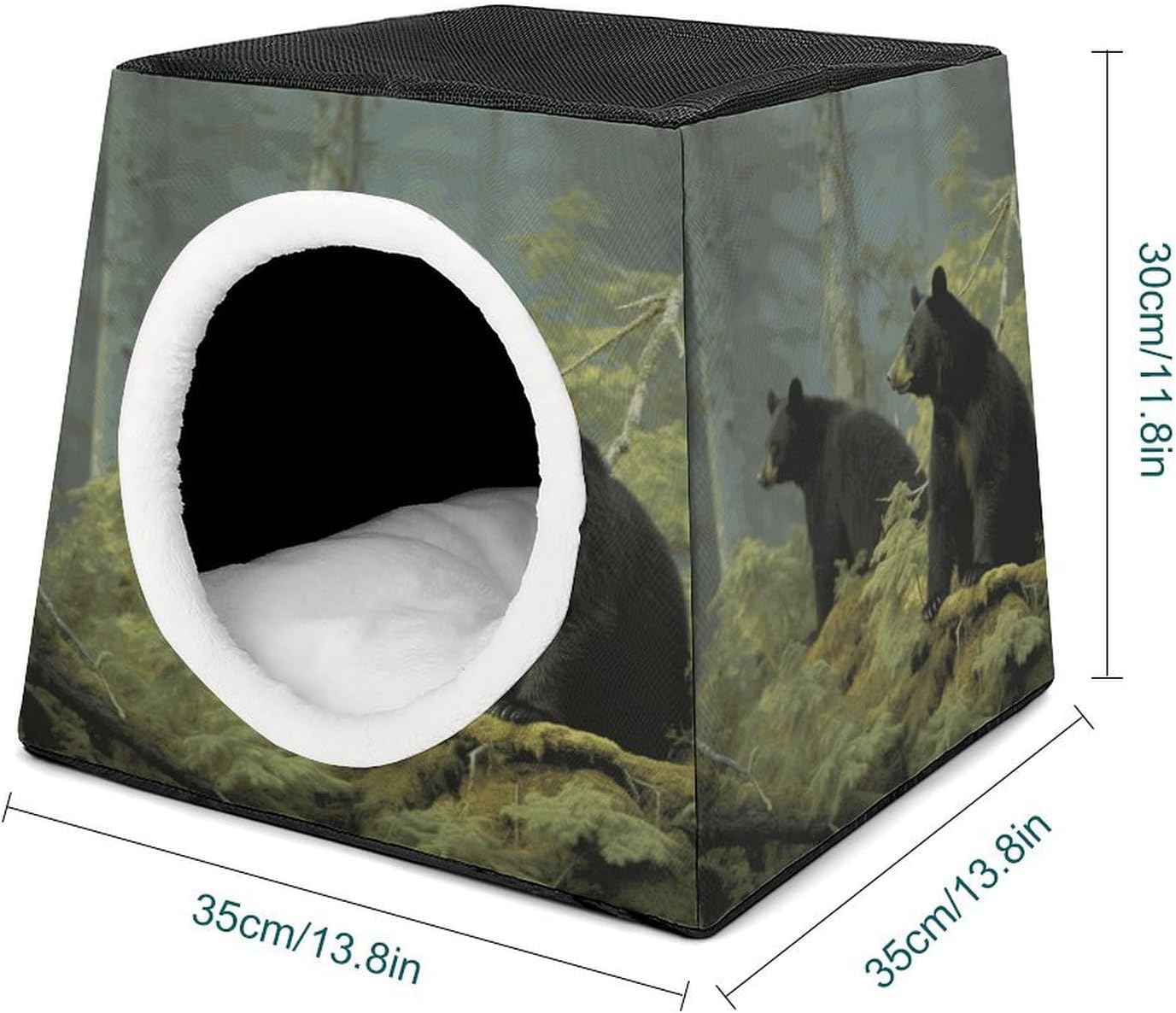 Portable Pet Nest Can Make Pets Sleep More Comfortably. Black Bears printed Dog Cave Bed Can Also Serve As A Decorative Element In Homes. The Mats At Winter Pet House Are Soft And Comfortable. The Spacious Design Of Warm Pet Cave Provides Ample Room For Small Animals To Stretch