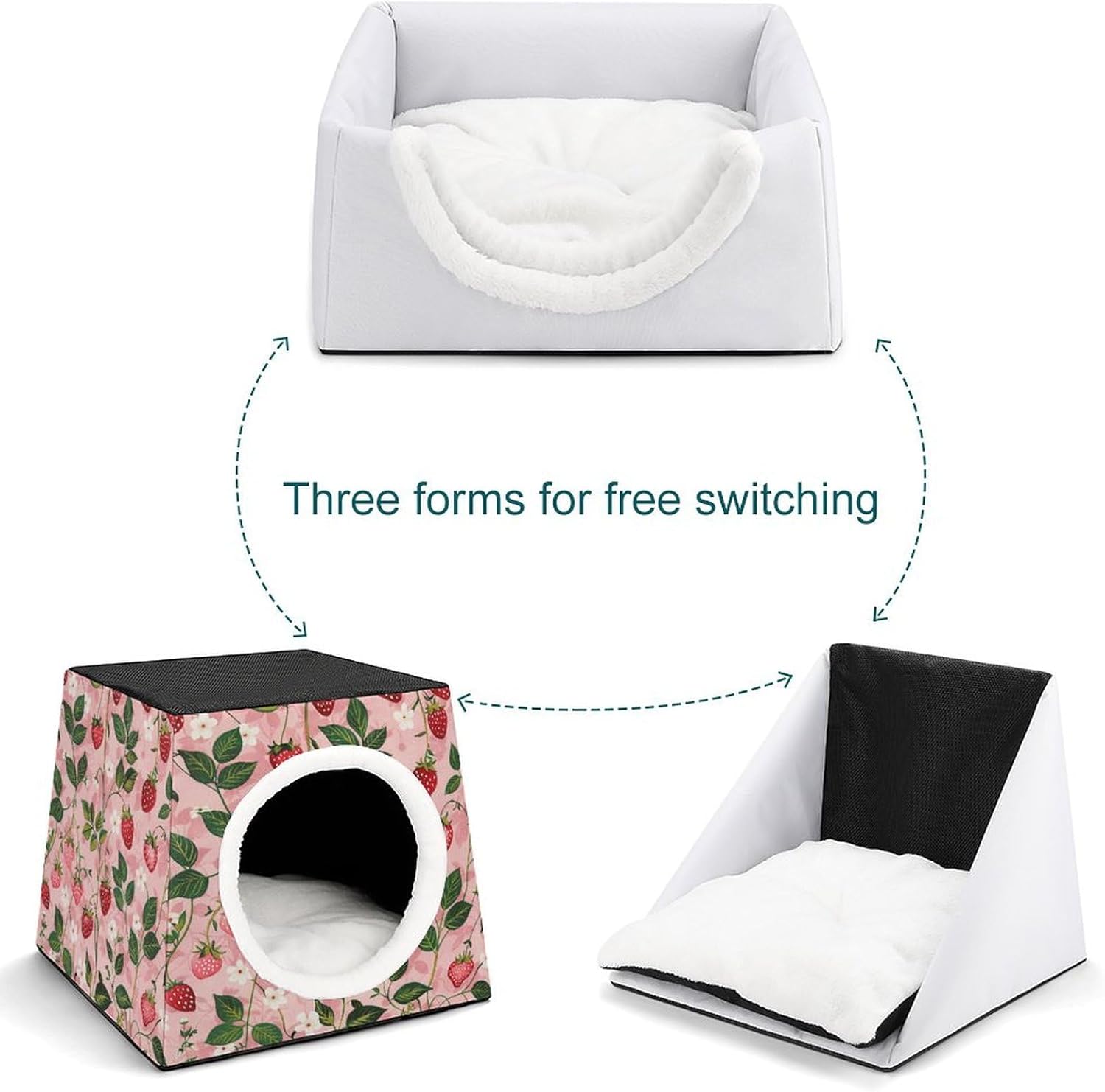 Portable Pet Nest Can Make Pets Sleep More Comfortably. Peach Strawberry Print printed Dog Cave Bed Can Also Serve As A Decorative Element In Homes. The Mats At Winter Pet House Are Soft And Comfortable. The Spacious Design Of Warm Pet Cave Provides Ample Room For Small Animals To Stretch