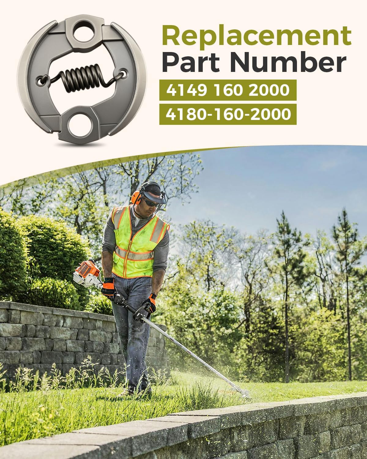 Compatibility: Fit for Stihl HL91K Fit for Stihl HL91KC Fit for Stihl HL92C Fit for Stihl HL92KCFit for Stihl HL94 Fit for Stihl HL94CM Fit for Stihl HL94K Fit for Stihl HL94KCFit for Stihl SP92C Fit for Stihl SP92TC Fit for Stihl KM91R Fit for Stihl KM94RFit for Stihl KM94RC Fit for Stihl KM111R Fit for Stihl KM131 Fit for Stihl KM131RFit for Stihl BT131 Fit for Stihl HT102 Fit for Stihl HT103 Fit for Stihl HT132Fit for Stihl HT133 Fit for Stihl FS89 Fit for Stihl FS89R Fit for Stihl FS91Fit for Stihl FS91R Fit for Stihl FS94 Fit for Stihl FS94R Fit for Stihl FS94RCFit for Stihl FS111 Fit for Stihl FS111R Fit for Stihl FS111RX Fit for Stihl FS311Fit for Stihl FR131T Fit for Stihl FC96 Fit for Stihl FC111Replacement part number: 4149-160-2000, 4180-160-2000Product features: By engaging and disengaging the clutch, the transmission of engine power to the working parts is controlled, ensuring smooth power switching during the equipment's startup, operation, and shutdown, thus improving the equipment's operating efficiency and safetyNotice: Please confirm whether the device model is in the compatible list to avoid being unable to use it due to model mismatchAvoid humid and high-temperature environments during storage to prevent metal parts from rusting or plastic parts from agingf you encounter any issues with the product after receiving it, please contact us promptly