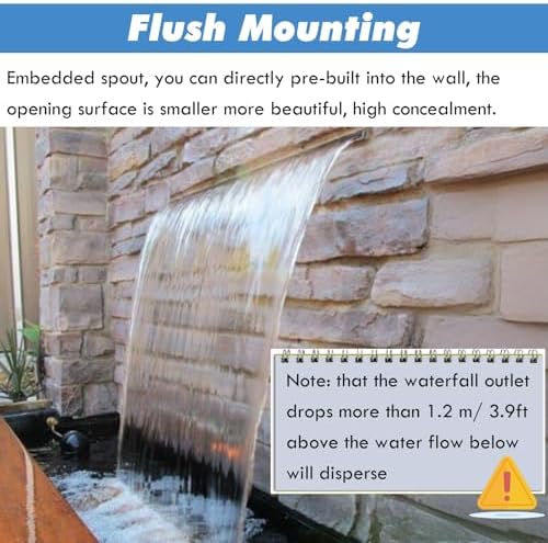 Transform your pool or courtyard into a stunning waterscape with our customizable waterfall spillway kit. Designed for versatility, this product fits various spaces, including residential pools, outdoor courtyards, and commercial venues, ensuring you find the perfect length for your needs. **Product Specifications:** - **Material:** Crafted from high-quality 316 stainless steel, known for its strength and durability against the elements. - **Spillway Length:** Customizable to suit your specific installation requirements. - **Spillway Width:** 150mm (5 9/10in) for an impressive water flow. - **Spillway Height:** 120mm (4 7/10in) to create a captivating water feature. - **Mounting Height:** Designed for installations less than 1.2m/3.9ft from the water surface. **Key Features:** - Elevates the aesthetic appeal of any water feature with its sleek design. - The steady flow design provides even water distribution, enhancing visual appeal and tranquility. - Ideal for both residential and commercial applications, making it a versatile choice for all settings. - Please note that the fountain spillway kit does not include a water pump; you will need to provide your own for installation. - The bottom connection design allows for easier installation, and we can accommodate location changes if notified in advance. **Package Includes:** - Waterfall Spillway Kit - 1 x PVC Connector **Important Notes:** - Please be aware that manual measurements may result in a slight error of 1-3 cm. - Lighting and display differences may cause variations in color between the product and images. Enhance your environment with an elegant water feature that adds value and beauty to your space. Enjoy the soothing sound of flowing water while creating a serene atmosphere for relaxation and enjoyment.