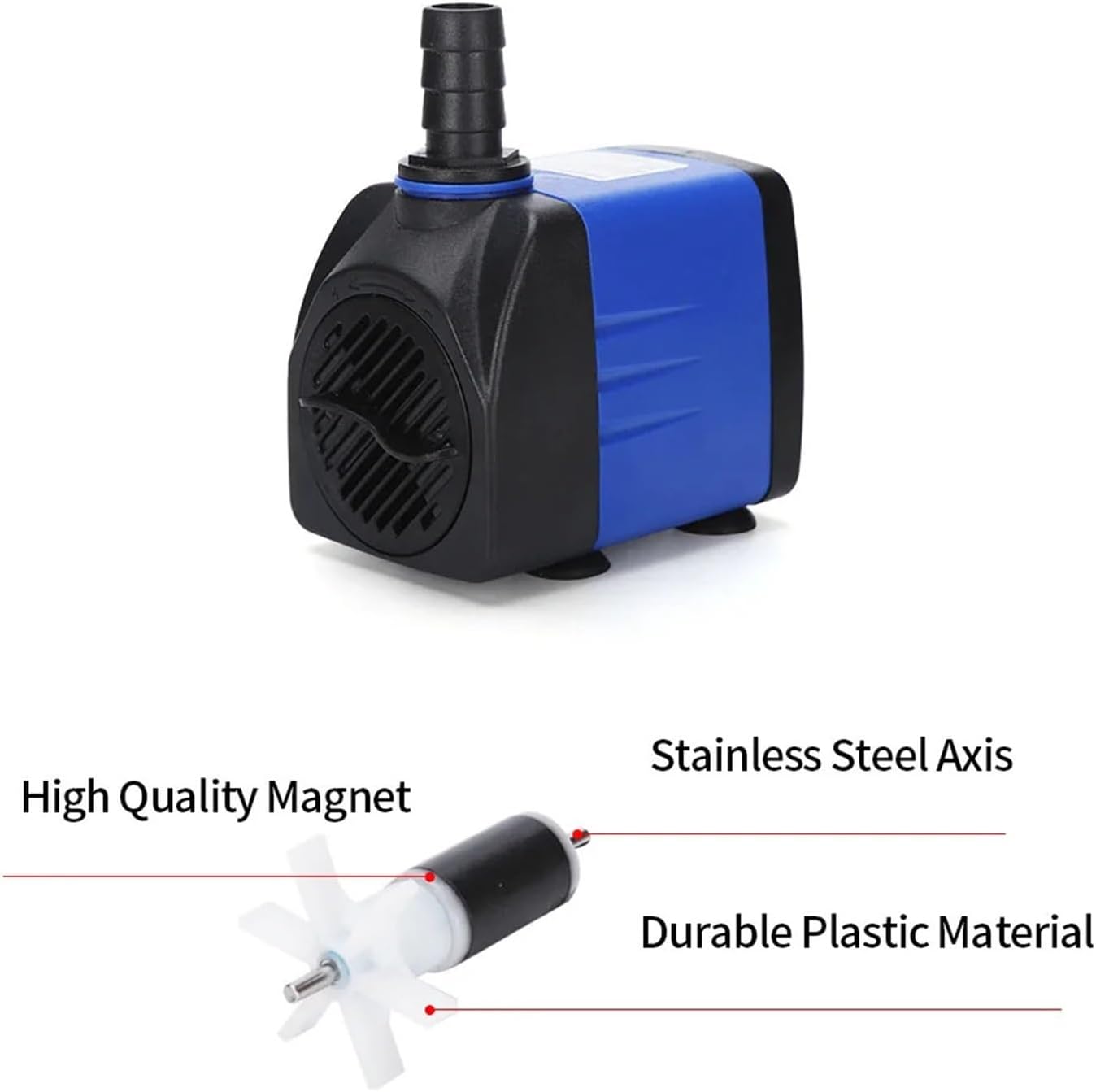 PumpsSpecification:material: plasticcolor: blueVoltage: 220V-240VstrengthBody sizeflow3W3.8 * 5.8 * 4.6 cm / 1.50 x 2.28 x 1.81 inches (approx.)220L/h6W4.3 * 6.5 * 5.3 cm / 1.69 x 2.56 x 2.09 inches (approx.)450L/h10W4.5 * 7 * 5.7 cm / 1.77 x 2.76 x 2.24 inches (approx.)600L/h15W5.5 * 8 * 6.8 cm / 2.17 x 3.15 x 2.68 inches (approx.)800 l/h25W6.5 * 10 * 7.5 cm / 2.56 x 3.94 x 2.95 inches (approx.)1200L/hPackage Included:1 x Submersible Pump (Other items in the photo are not included)Notice:Please allow 1-3cm error due to manual measurement, please make sure you do not mind before ordering.