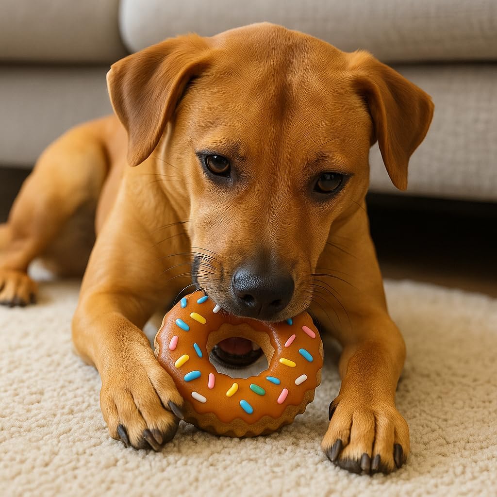 Give your furry friend a toy that’s as fun as it is durable! Our Donut-Shaped Dog Chew Toy is crafted from safe, food-grade rubber that can handle even the most enthusiastic chewers. The colorful design and built-in squeaker make playtime exciting while the textured surface naturally cleans your dog’s teeth and gums. Whether your pet loves to chew, fetch, or simply stay busy, this interactive squeaky toy keeps them entertained and helps relieve boredom and anxiety. Perfect for both indoor and outdoor play, it’s a great way to encourage healthy chewing habits and a happy, active lifestyle for your beloved dog.