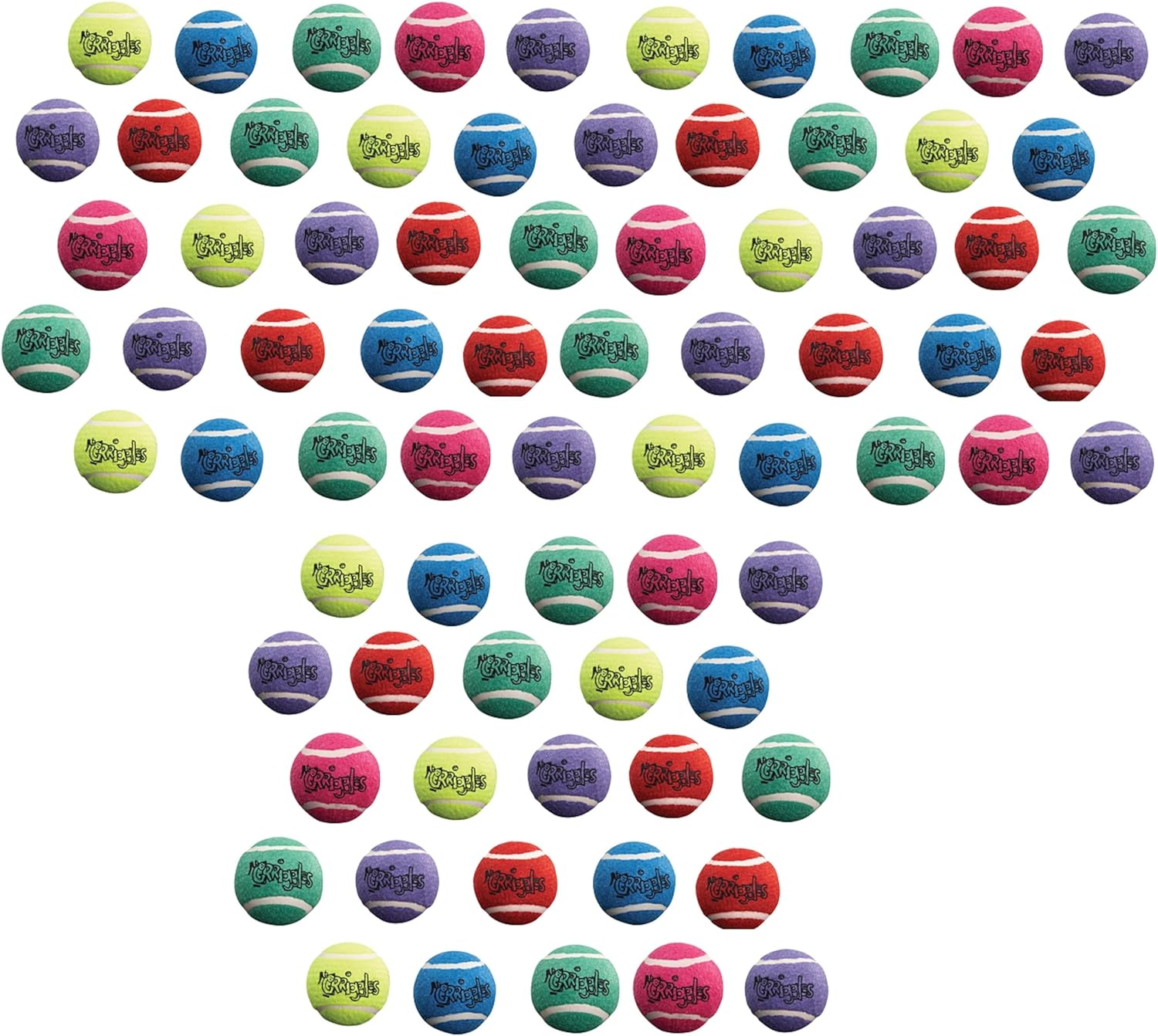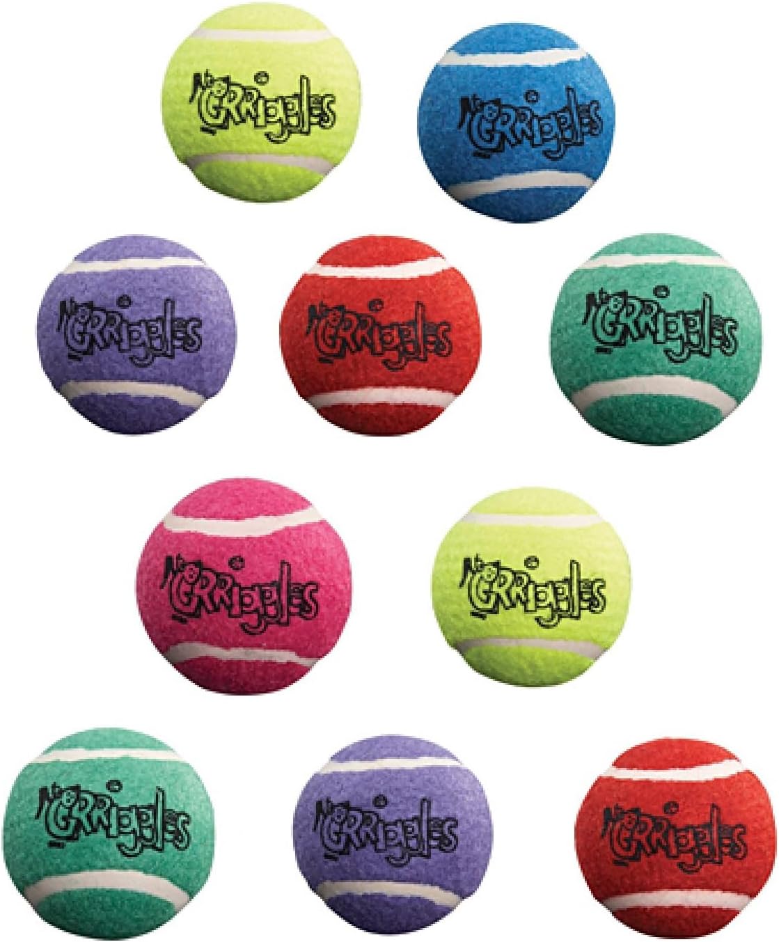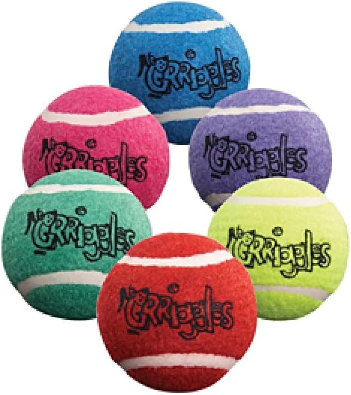 MUCH safer than tennis balls made overseas! No dog lover can ever own too many tennis balls. Dogs love the happy sight of a ball, and when one or two get pitched too far past our field of vision, it's good to have some extras on hand. These tough, colorful balls are going to make everyone smile. Toss, fetch, play chew, great exercise and interactive mental stimulation for all dogs Colorful tennis balls for dogs – ideal for fetching, throwing, and chewing Made from extra durable rubber to hold up to the roughest play dogs can dish out Our Bulk Tennis Balls come in a nice mix of Red, Blue, Green, Orange, Yellow and Purple colors Available in economical bulk packs of 10, 25, 50, 75 and 100 packs. The more you buy, the less each ball costs Material: Rubber, felt. Size: Each tennis ball measures 2½"L