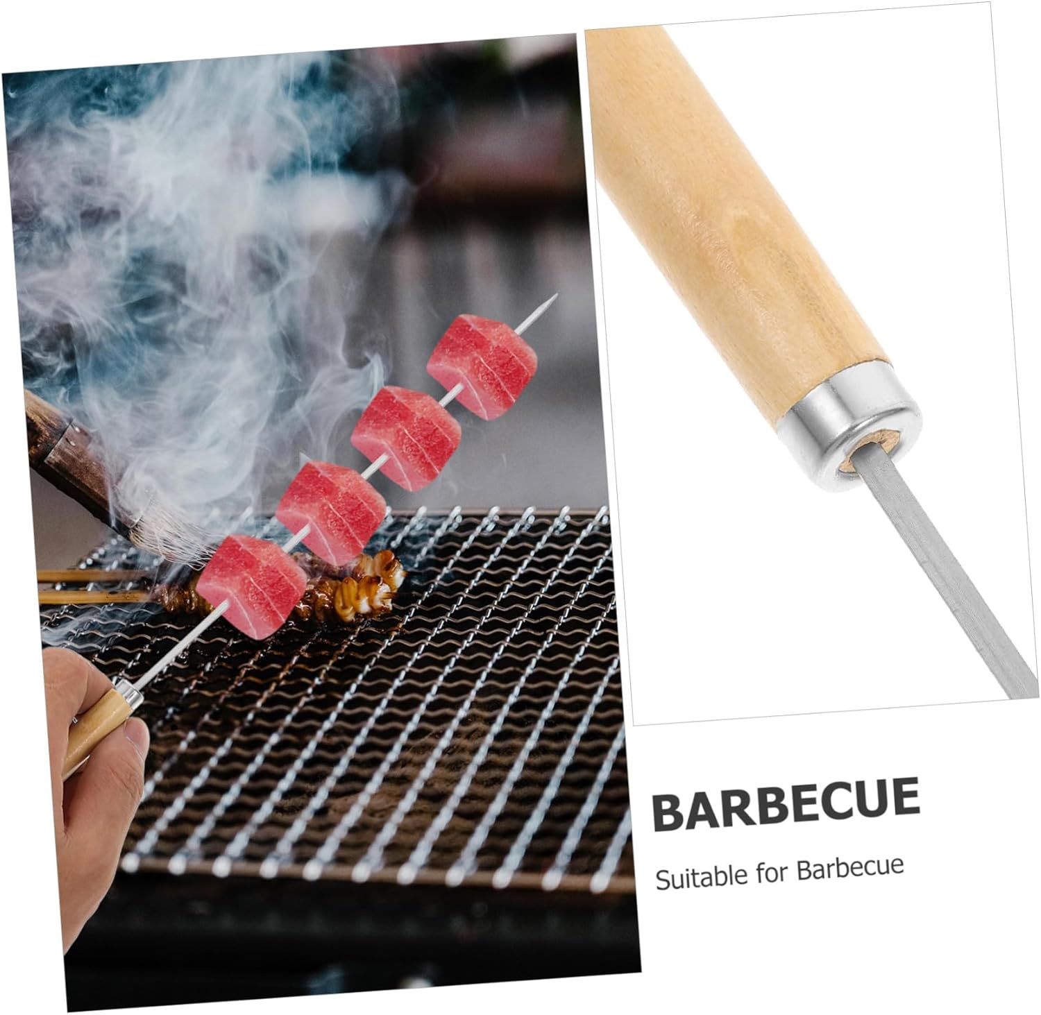 Package Include 50 x BBQ Skewers Characteristics -Size:34.00X1.00X1.00cm/13.36X0.39X0.39in; Width : 3mm , Thickness: 0.8mm flat skewers -Variety of skewers: includes both round and flat skewers, allowing you to choose the shape for different types of food, enhancing your grilling experience roasting sticks -Color:Multi marshmallow -Ideal length: these skewers are the length for grilling, providing enough space to hold a variety of foods securely over the grill flat skewers for kabobs -Stainless steel: made from stainless steel, these skewers are highly and resistant to high temperatures, ensuring they won't warp or break campfire accessories -Comfortable wooden handle: the wooden handle offers a nonslip, comfortable grip, making it easy to turn and handle the skewers while grilling skewers for smores -Material:Stainless steel, wood skewer grill -Generous quantity: enough for any barbecue occasion, ensuring you can cater to all your guests stainless steel skewers for grillingGoods Informationcamping skewers The wooden handle offers a secure grip, allowing you to easily rotate the skewers for even cooking.meat skewers Each skewers is 35cm long, making them ideal for a variety of grilling .metal skewers Whether you're grilling kebobs or roasting marshmallows, these metal skewers are a must-have tool.marshmallow roasting sticks Crafted from 304 stainless steel, they are built to withstand high temperatures