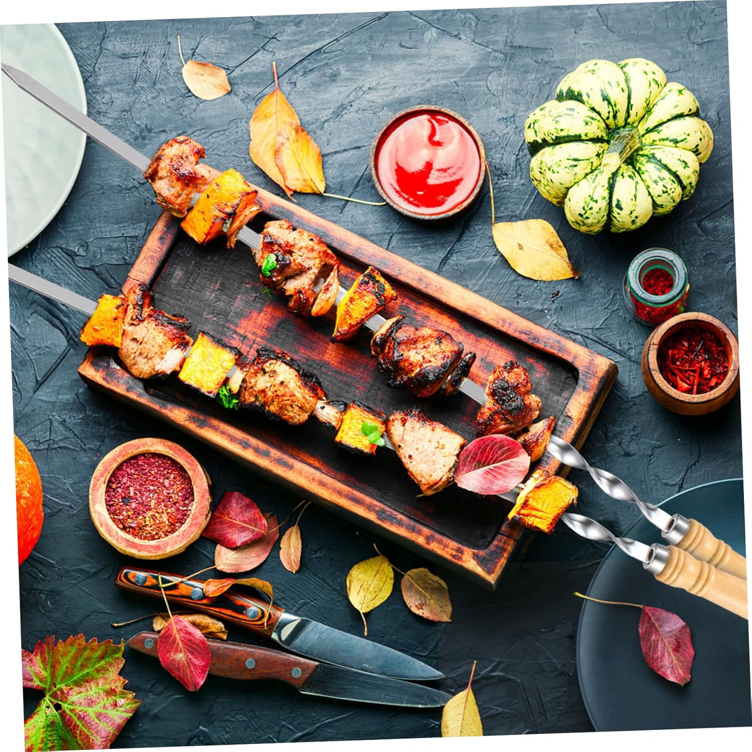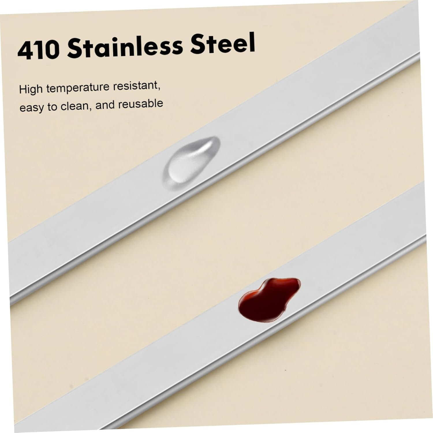 Package List 18 x Barbecue Skewers Characteristics -Color:Silver BBQ skewers sticks -Size:55.00X2.00X2.00cm/21.61X0.79X0.79in stainless steel BBQ sticks -Material:410 Stainless Steel stainless steel barbecue skewers Using flat body design, this stainless steel BBQ barbecue skewer helps make the roast more stable skewers for BBQ. You can use this barbecue skewer on many occasions like grilling, kitchen, picnic and so on BBQ sticks. BBQ skewer is made of stainless steel material, which is resistant to high temperature, easy for you to clean and reusable flat barbecue skewers. This barbecue skewer is designed with a wooden handle, which allows you to hold it comfortably barbecue skewers. The design of pointed head of this BBQ skewer is convenient for you to pierce meat kabob grill skewers.Goods Informationmetal skewers for barbecue You can use it for meat, shrimp, chicken, vegetable and so on.stainless steel BBQ sticks like barbecue? want to enjoy a delicious barbecue experience more conveniently? We recommend you to use this product.BBQ skewers sticks This is a multifunctional and practical stainless steel BBQ barbecue skewer.BBQ sticks It is a great helper for you to enjoy a barbecue with your family or friends