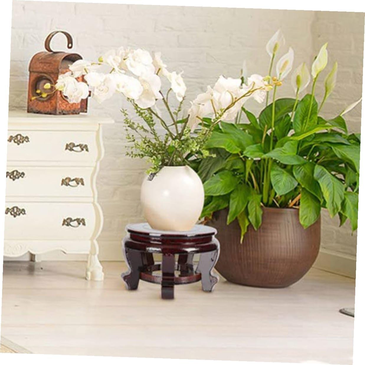 Package Include 1 x Wooden Flowerpot Stand Characteristics -Material:wood -Product Info:Solid wood rack -Color:Light Brown - Size: 27.00X27.00X12.50cm/10.61X10.61X4.91in - Wide application, the wood plant storage base is perfect for displaying small potted plants, fish tank, vase or other crafts planter stand indoor. - The plant stand has a good bearing ability, suitable for most kinds of flowerpot, and not easy to deform vase display stand. - The edges of the wood plant stand smoothly processed, protecting your hands from being scratched office flower stand. - A nice choice for your friends or family who like succulent plant, show them your love and concern flower pot stand indoor living room. - The plant stand is made of premium wood, strong and durable, and will not crack or fade when put in outside planter pot holder.Goods Descriptionflower floor stand The potted plant base is made of wood material is well-made and sturdy, and its retro and simple appearances fits for many plants.crafts display base Lightweight and compact design and simple color make them look beautiful, suitable for holding bonsai and other flowers, adding more natural beauty to your space