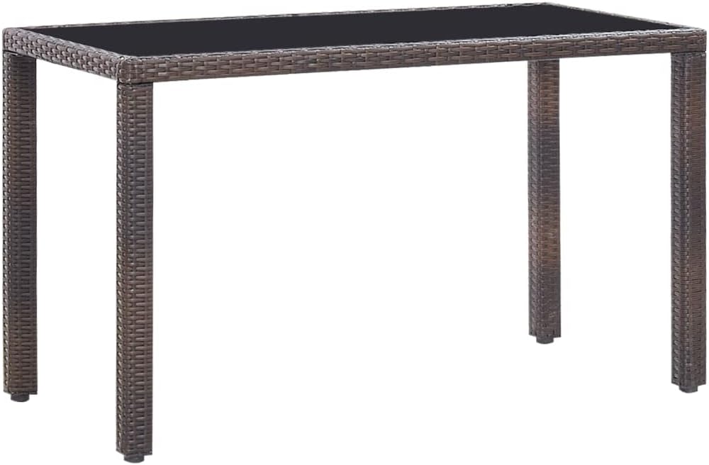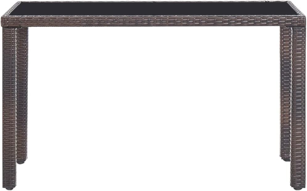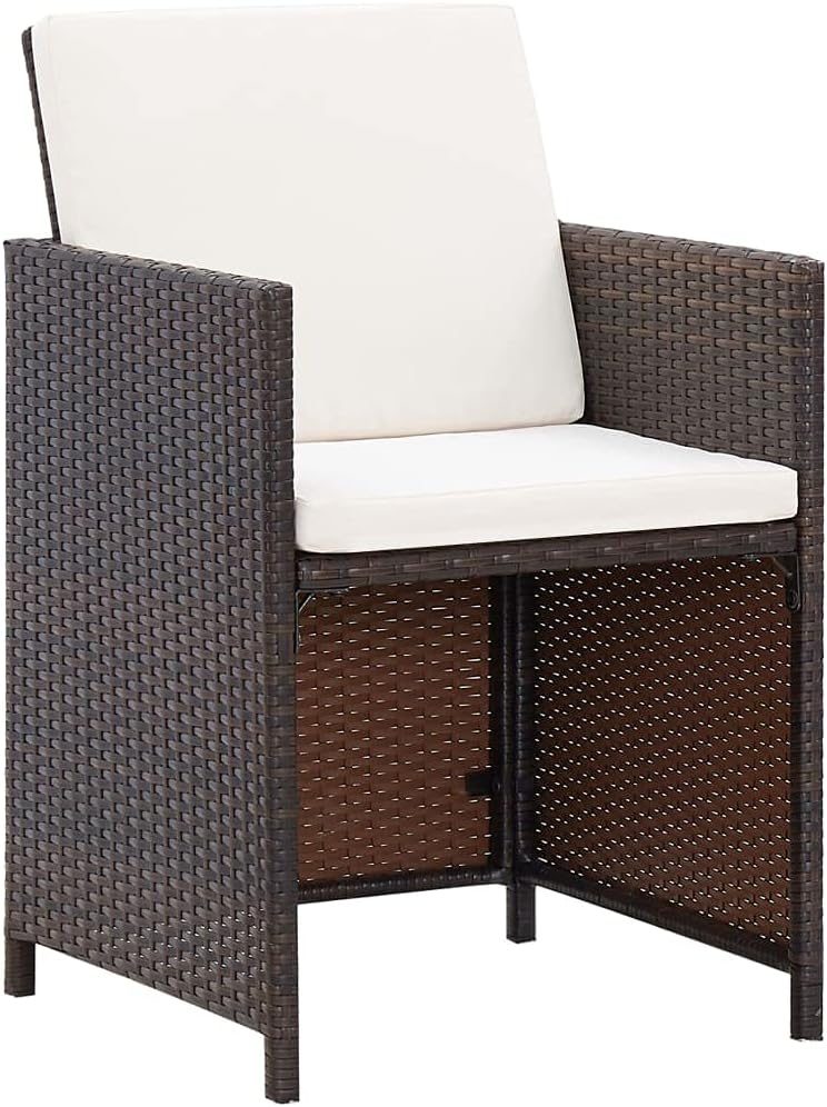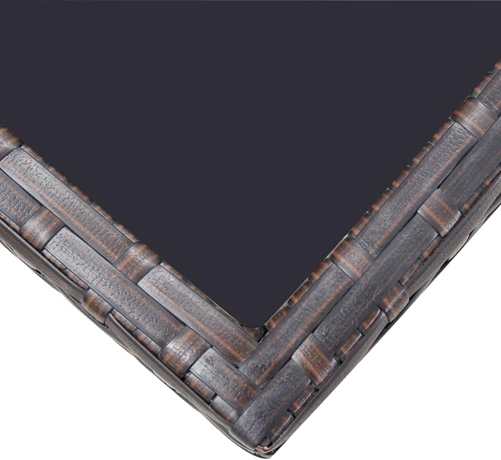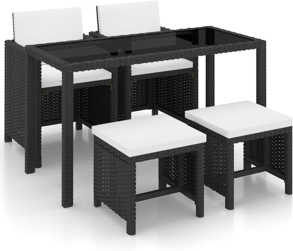 Our stylish rattan patio furniture set will become the focal point of your garden or patio!This rattan dining set, with an elegant design, will be a great choice for al fresco dining or relaxing in the garden. The powder-coated steel frames make the table, chairs and stools strong and sturdy, and thanks to their lightweight constructions, all items are easy to move. Thanks to the weather-resistant and waterproof PE rattan, the dining set is easy to clean. The glass top is also easy to clean with a damp cloth.The thick, soft, foam-filled seat and back cushions are highly comfortable and made of water-repellent polyester. The removable and washable covers are equipped with zips.Delivery includes 1 table, 2 chairs, 2 stools, and 6 cushions.Note 1): We recommend covering the set in the rain, snow and frost.Note 2): This item will be shipped flat packed. Assembly is required; all tools, hardware and instructions are included.Rattan color: BrownCushion color: Cream whiteMaterial: Steel frame + PE rattan + glass tabletopCushion material: Polyester cover with foam fillingTable dimensions: 48.4" x 23.6" x 29" (L x W x H)Chair dimensions: 20.5" x 22" x 33.5" (W x D x H)Seat depth: 15.7"Seat width: 18.3"Seat height from the ground: 17.3"Armrest height from the ground: 26.4"Stool dimensions: 16" x 16" x 13.8" (W x D x H)Cushion thickness: 2"Cushion covers are removableDelivery includes:1 x Table2 x Chair2 x Stool6 x Cushion