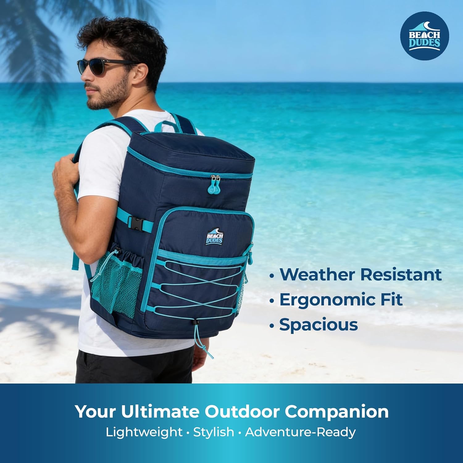 The Beach Dudes Philosophy: Performance Meets Paradise Stop struggling with bulky plastic coolers and sandy towels that never dry. The Beach Dudes Ultimate Adventure Bundle was engineered for the modern explorer who wants to maximize their time in the sun and minimize the hassle. Why Choose This Bundle? We didn't just throw two products together; we created a system. Our 35-can cooler is designed to be the "engine" of your beach day, providing enough cold storage for the whole crew, while the XL Sandproof Blanket provides the "foundation"—a massive, dry, sand-free zone for everyone to relax. Technical Specifications: Cooler: 35-Can Capacity, 24-Hour Ice Retention, 100% Leakproof. Blanket: 9ft x 7ft (Fits 4-6 Adults), Waterproof Ripstop Nylon, 4 Stakes Included. Portability: Hands-free backpack design with integrated blanket storage loops. Upgrade your beach game. Experience the durability, style, and performance of Beach Dudes.