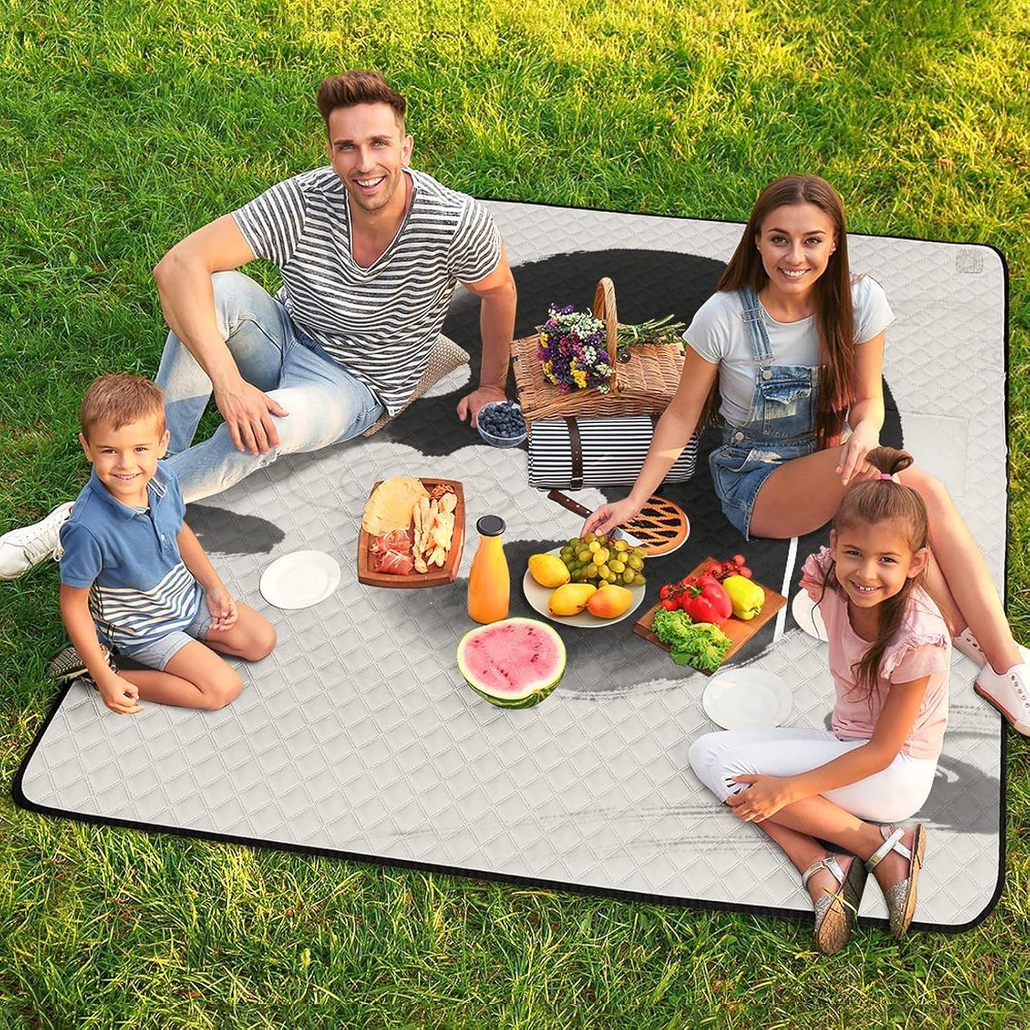 Elevate Your Outdoor Experience with the Versatile Picnic BlanketCollapsible Picnic Mat Picnic Essentials Convertible Tote Bag Portable Rug for Picnics Beach Essentials Camping Pad Cute Picnic Blanket Bag Foldable Travel Mat Large Family Picnic Blanket Outdoor Picnic MatsSuperior Protection and ComfortForget worrying about wet grass or prickly sand. Our blanket features a smart 3-layer construction. The top layer is soft to the touch, while the middle padding provides just the right amount of cushioning against hard ground. The bottom layer, made from durable 210D Oxford cloth, is completely waterproof and acts as a barrier against moisture and dirt, ensuring you stay clean and dry.Designed for the Modern ExplorerWe understand that space is precious when you're on the move. That's why our blanket features an ingenious foldable design. In seconds, it transforms from a full-size mat into a compact carry bag with a handle. This makes it incredibly easy to transport and store. But the innovation doesn't stop there; the carry bag itself is designed to be used as a sturdy shopping tote, making this blanket a true 2-in-1 essential for eco-conscious shoppers.Choose Your Perfect Size:59 x 40 inches / 150 x 100cm: Ideal for couples or solo use.59 x 59 inches / 150 x 150cm: Perfect for a small family or small group of friends.78.8 x 78.8 inches / 200 x 200cm: Our large size, perfect for family gatherings and group outings.Whether you're planning a beach vacation, a camping trip, a hike, or a simple day at the park, this cute picnic blanket is your reliable partner for comfort and convenience. Pack it, carry it, and enjoy the outdoors without compromise.