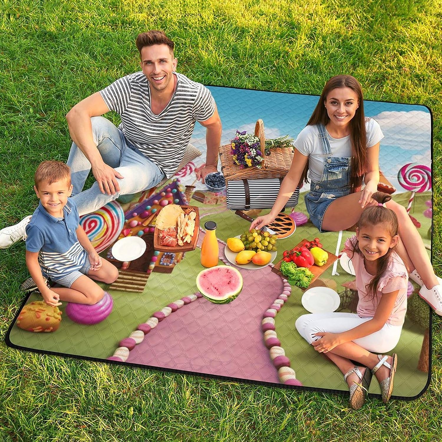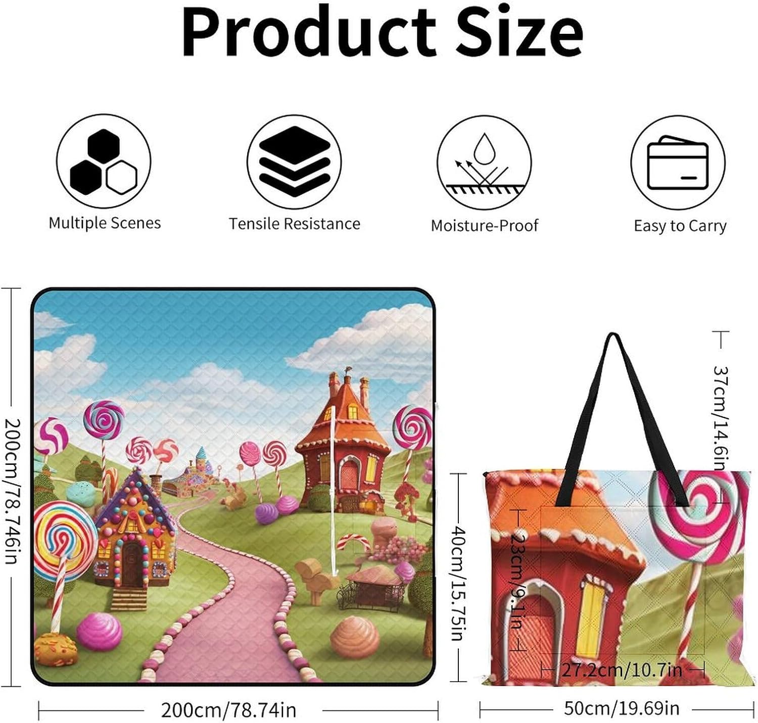 Elevate Your Outdoor Experience with the Versatile Picnic BlanketCollapsible Picnic Mat Picnic Essentials Convertible Tote Bag Portable Rug for Picnics Beach Essentials Camping Pad Cute Picnic Blanket Bag Foldable Travel Mat Large Family Picnic Blanket Outdoor Picnic MatsSuperior Protection and ComfortForget worrying about wet grass or prickly sand. Our blanket features a smart 3-layer construction. The top layer is soft to the touch, while the middle padding provides just the right amount of cushioning against hard ground. The bottom layer, made from durable 210D Oxford cloth, is completely waterproof and acts as a barrier against moisture and dirt, ensuring you stay clean and dry.Designed for the Modern ExplorerWe understand that space is precious when you're on the move. That's why our blanket features an ingenious foldable design. In seconds, it transforms from a full-size mat into a compact carry bag with a handle. This makes it incredibly easy to transport and store. But the innovation doesn't stop there; the carry bag itself is designed to be used as a sturdy shopping tote, making this blanket a true 2-in-1 essential for eco-conscious shoppers.Choose Your Perfect Size:59 x 40 inches / 150 x 100cm: Ideal for couples or solo use.59 x 59 inches / 150 x 150cm: Perfect for a small family or small group of friends.78.8 x 78.8 inches / 200 x 200cm: Our large size, perfect for family gatherings and group outings.Whether you're planning a beach vacation, a camping trip, a hike, or a simple day at the park, this cute picnic blanket is your reliable partner for comfort and convenience. Pack it, carry it, and enjoy the outdoors without compromise.