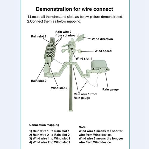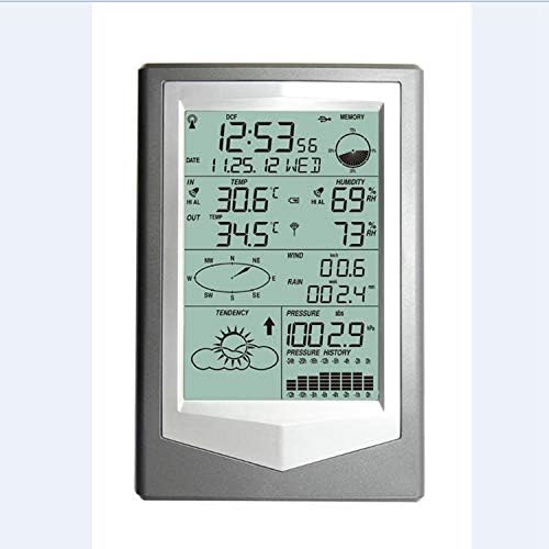 Features: ◆ Solar Power. ◆ Indoor and outdoor temperature display in degrees Fahrenheit or celsius (user selectable). ◆ Indoor and outdoor relative humidity displays. ◆ Barometric pressure reading in inHg or hPa or mmHg, absolute or relative(user selectable) ◆ Detailed display of rainfall data in 1 hour, 24 hours, one week, one month and total since last reset. (user selectable in mm or inch) ◆ Wind speed in mph, km/h, m/s, knots, Bft or gust . ◆ Wind direction (N、S、W、E、NE、SE、SW、NW) display with LCD compass. ◆ Wind chill and Dew point temperature display. ◆ Weather forecast display by weather icons(sunny, Overcast, cloudy, rainy, snowy). ◆ Weather forecast tendency arrow. ◆ Weather alarm modes for temperature, humidity, wind chill, dew point, rainfall, windspeed, air pressure, storm warning. ◆ Records Mix/Max indoor and outdoor temperature, humidity. ◆ Super bright green LED Back light. ◆ Radio controlled time and date with manual setting option(DCF, WWVB selectable) ◆ 12 or 24 hour time display. ◆ Perpetual calendar. ◆ Time zone and Time alarm setting . ◆ Wall hanging or free standing. ◆ Synchronized instant reception for outdoor weather data. ◆ Low battery indicator on the receiver.