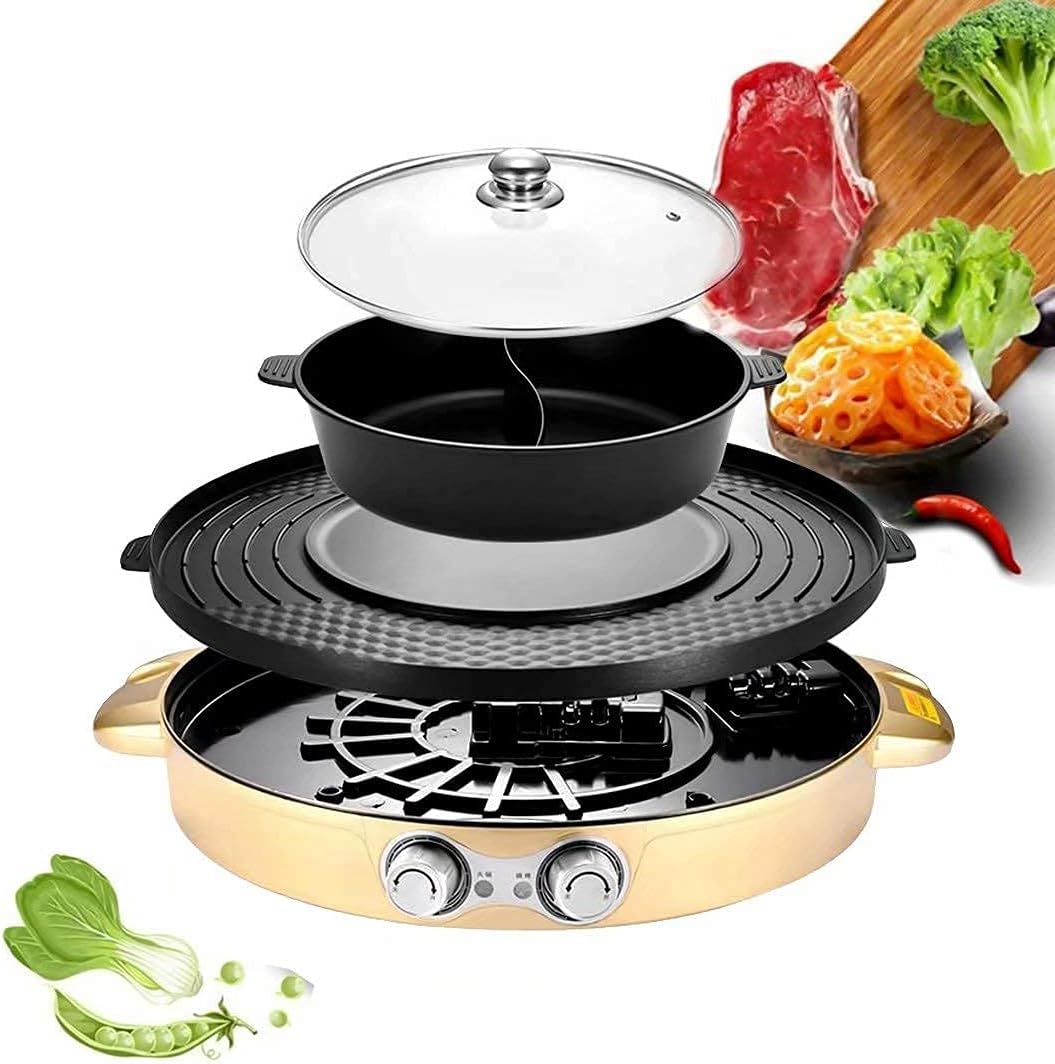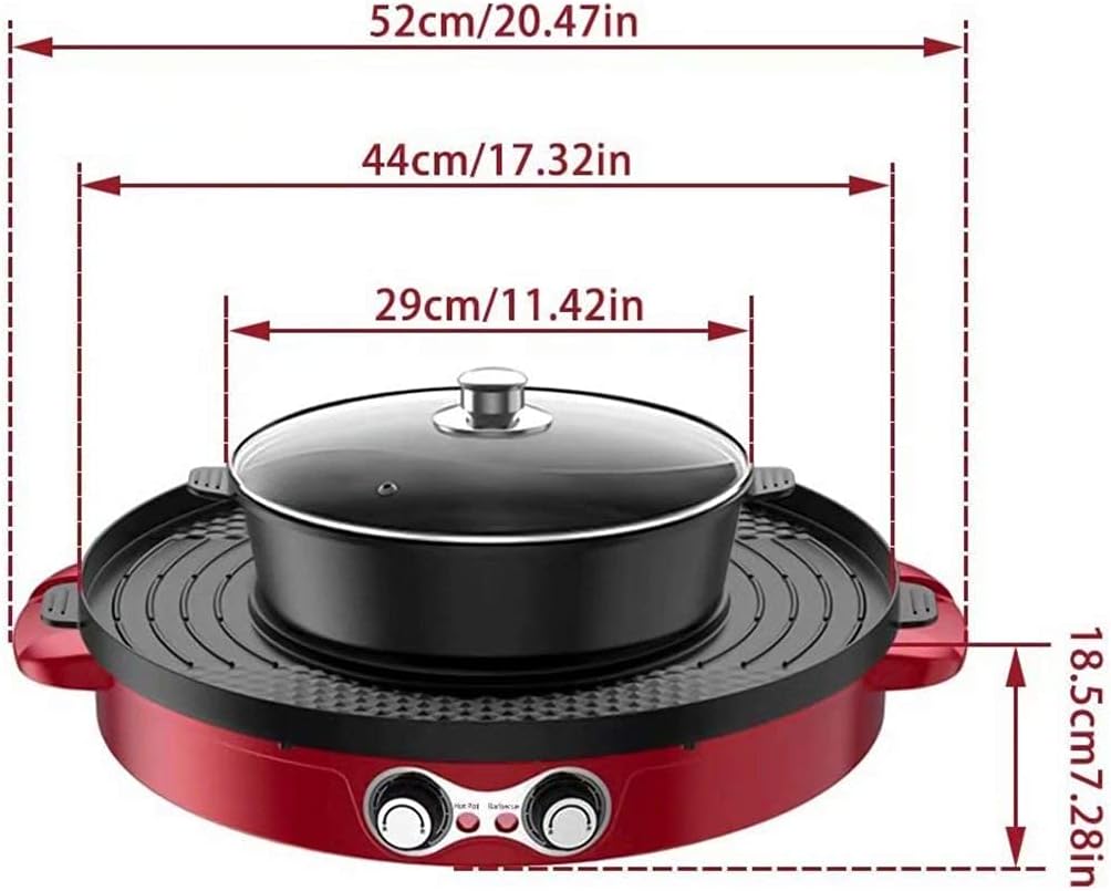 Product parameter Product material: ABS+food grade stainless steel Rated voltage: 110V/220V Rated frequency: 50HZ/60HZ Hot pot power: 1200W Grill power: 1100W Single temperature adjustment range: 0°~1200°C Control method: Dual control knob switch Hot pot capacity: 4L Hot pot diameter: 29cm Baking pan diameter: 44cm Product size: 52*52*23cm Pac: 57.5*24*51cm Net weight: 7kg Gross weight: 8kg Package Include: Main unit*1+English manual*1+scouring pad*1+dumplings maker*1+egg white separator*1+cleaning cotton*1+disposable gloves*1+seasoning bottle*1+barbecue clip* 1+Toothpick*1+oil-absor paper*1+rag*1+whisk*1+ frying egg*1+sealing clip*1+seasoning dish*1+fruit fork*1+ orange peeler*1+disposable Apron*1+ bottle opener*1+wooden spatula*1+, soup spoon*1+slotted spoon*1+ bamboo stick*1+ food brush*1 Warm Tips: Each item will be carefully packaged and reaches you as soon as possible. Please feel free to contact us for any questions or requirements for the product. Our professional customer support team will reply to you via email within 24 hours.