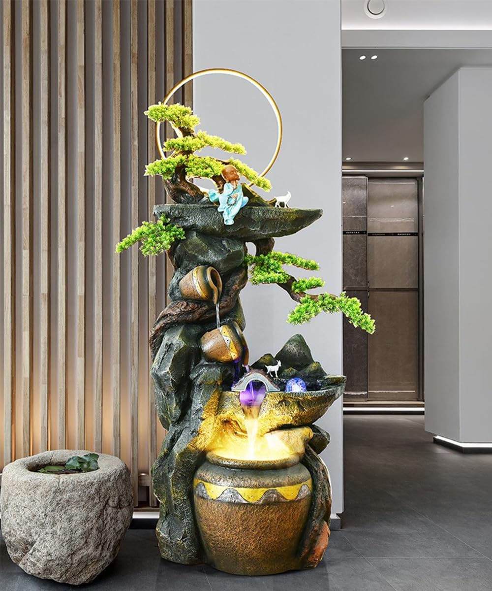 Create a Serene Escape with Rustic Charm Enhance your home, garden, or patio with this beautifully crafted Rustic Pot Cascade Water Fountain. Featuring an elegant tiered pot design with cascading water, bonsai accents, and ambient LED lighting, this fountain combines the soothing sounds of water with the charm of rustic decor. Each pot overflows gracefully, creating a calming waterfall effect that brings a touch of nature and tranquility to any setting.