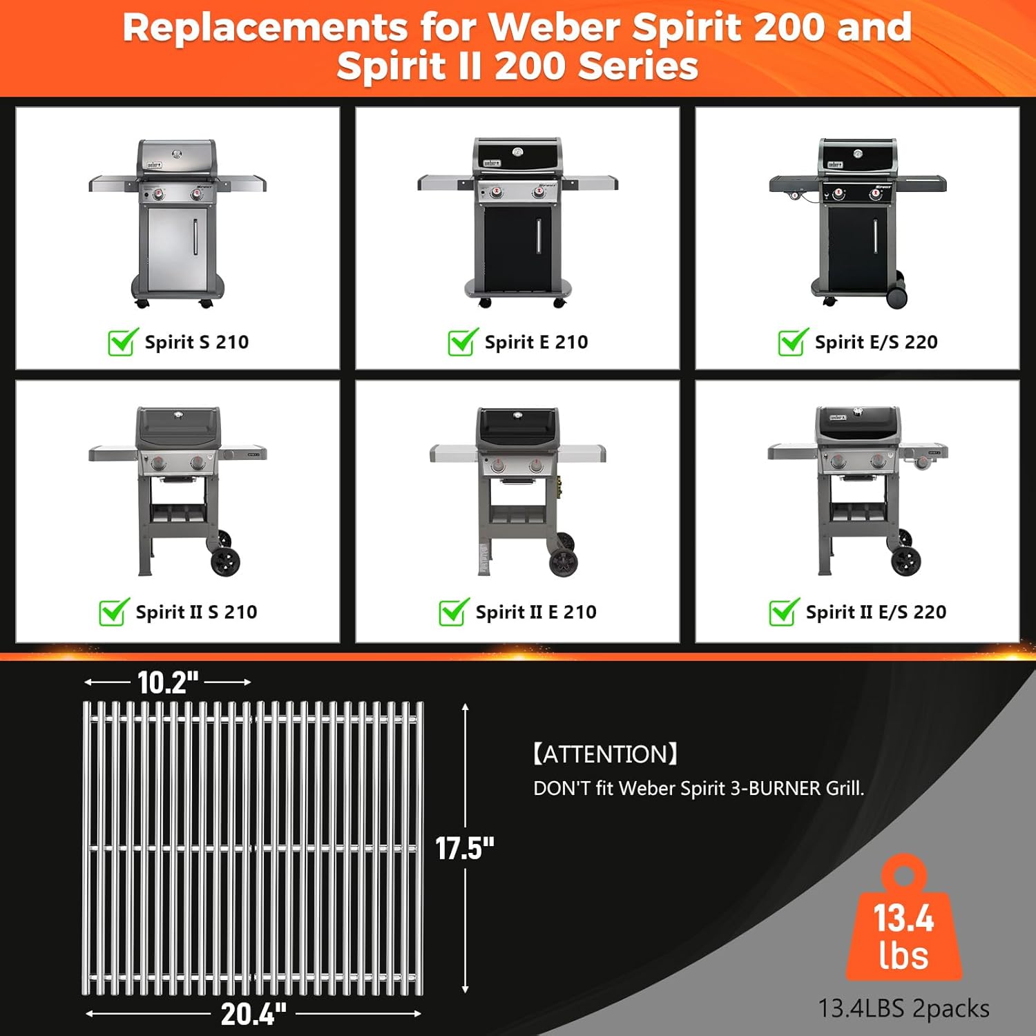 | Included Components | 2Pcs 304 Stainless Steel grill grates |