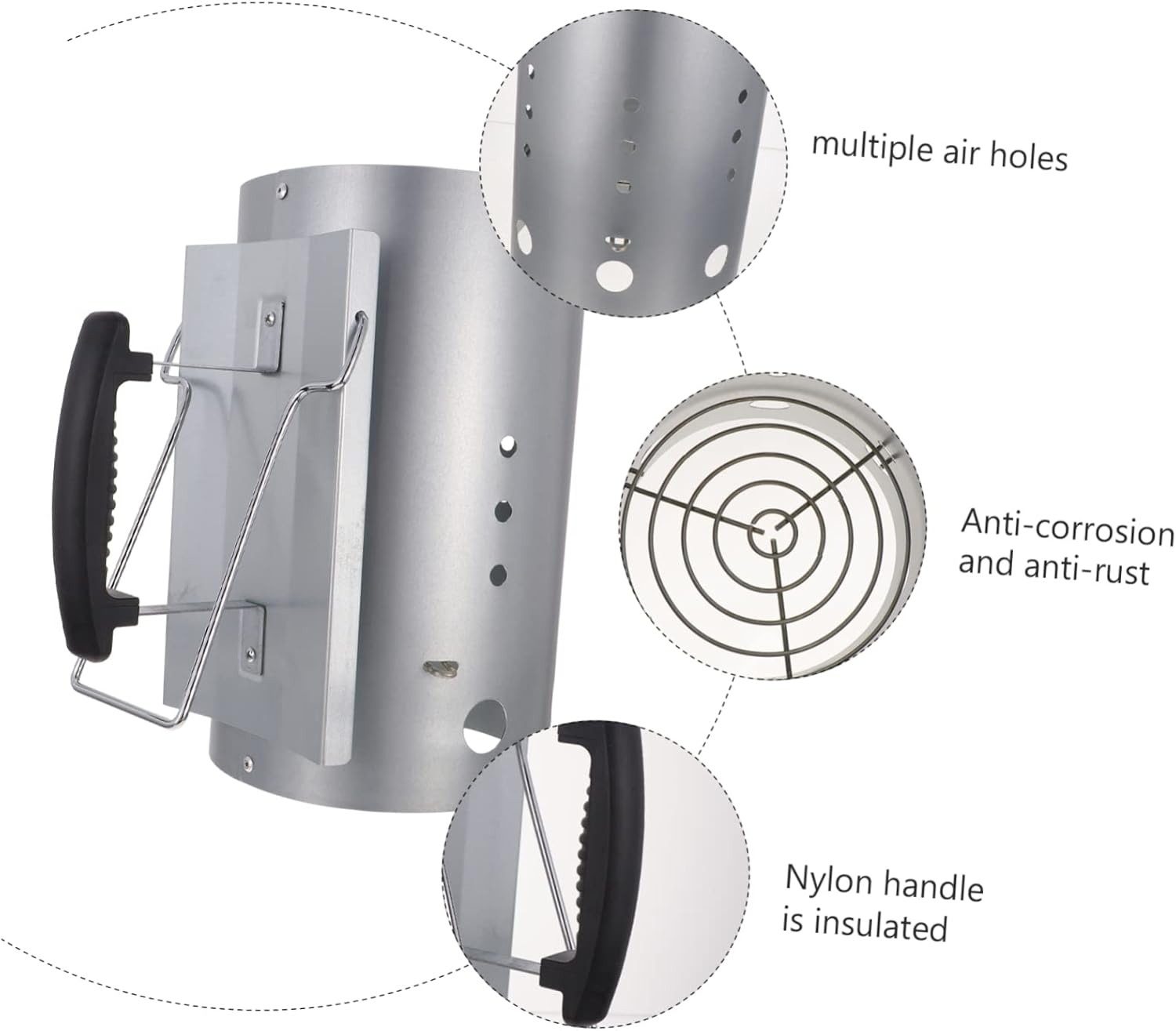 Package Include 1 x Charcoal Chimney Starter Features -Color:Silver Barbecue Fire Starter -Material: Galvanize Fire Starter Chimney. -Size: About 32.00X19.00X30.50cm/12.58X7.47X11.99in Charcoal Ignition Barrel. - Safe, odorless, no peculiar smell to food, fireplace tool is faster than the commonly used square starter BBQ Ignition Barrel. - This easy to use charcoal chimney starter works fast. With the this chimney starter, your coals light up quickly and evenly Carbon Stove. - The charcoal chimney starter adopts a heat- nylon handle and heat insulation layer to prevent heat transfer Charcoal Stove. - The chimney steel starter is galvanized and -proof, and has a . The nylon handle is designed to prevent burns Grill Tool. - Ideal for , barbecues, stoves, braziers, barbecues, stoves, campfires, pizza ovens Starter.Goods InformationBBQ Grill Lighter The generous ventilation holes on charcoal chimney can canister will ensure the charcoal have excellent air circulation and heat generation.Charcoal Ignition Barrel This charcoal chimney starter is constructed with galvanized.Barbecue Fire Starter Large diameter holes at the base for lighting your lighter fluid or newspapers to start the charcoal