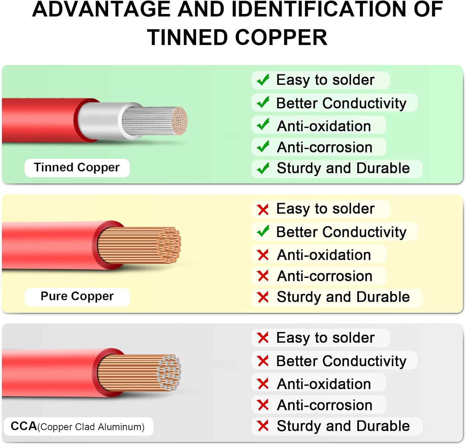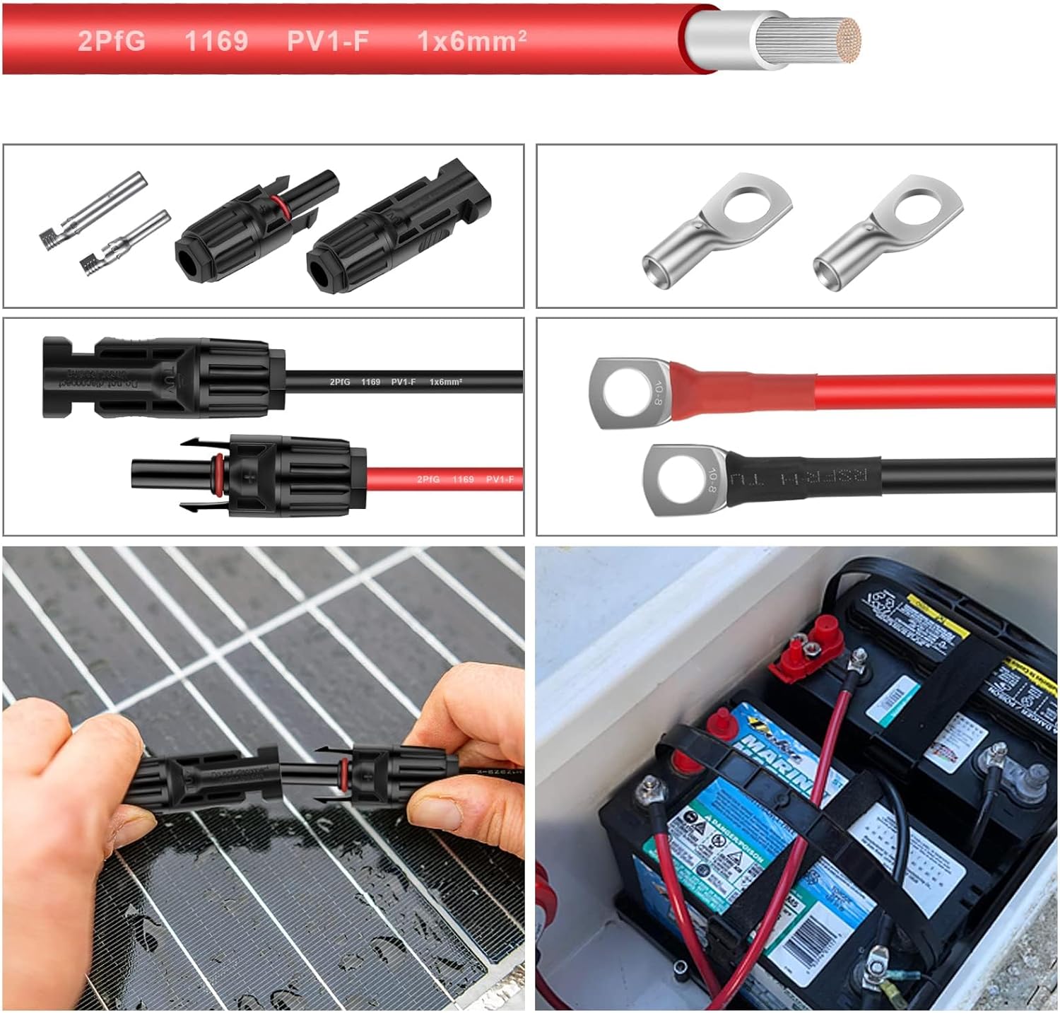 Shirbly 10AWG (6mm²) Solar Panel Wire - 10AWG: 78 strands 0.295 mm tinned copper wire are inside each cable. - used for solar panels, DC circuits, Boat, Marine, Automotive, RV , LED and inverter wiring etc. - PV Jacket insulation is thick and sturdy, coated well, sturdy and very flexible, UV Resistant.