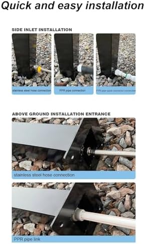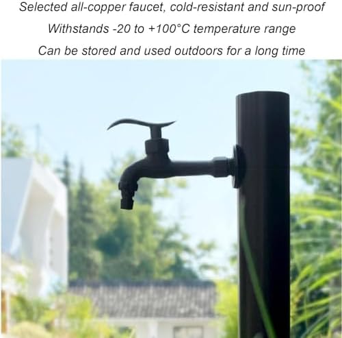 This outdoor pedestal faucet is designed with a modern square water column, making it a stylish addition to villa gardens, patios, and outdoor spaces. Made from high-quality 304 stainless steel, it boasts exceptional durability and a high-temperature baked paint finish that resists rust, UV damage, and harsh weather conditions. One of its standout features is the anti-freeze thermal insulation layer, which effectively prevents hose freezing and cracking during cold winters, ensuring reliable performance year-round. The faucet offers versatile installation options, allowing for both side and bottom water inlets to accommodate various garden layouts. Enhancing its usability, the faucet is equipped with a hose holder that keeps hoses organized, eliminating curling, kinking, and tangling. Whether you’re watering your garden, filling a pool, or cleaning outdoor equipment, this faucet is suitable for a variety of settings including villas, courtyards, lawns, schools, parks, and workshops. The package includes the water column, a water pipe bracket, insulation cotton, and all necessary installation accessories, making setup simple and efficient. Please note that manual measurements may result in a 1-3 cm variance, and slight color differences may occur due to lighting conditions. Elevate your outdoor experience with this functional and aesthetically pleasing faucet that combines practicality with charm.