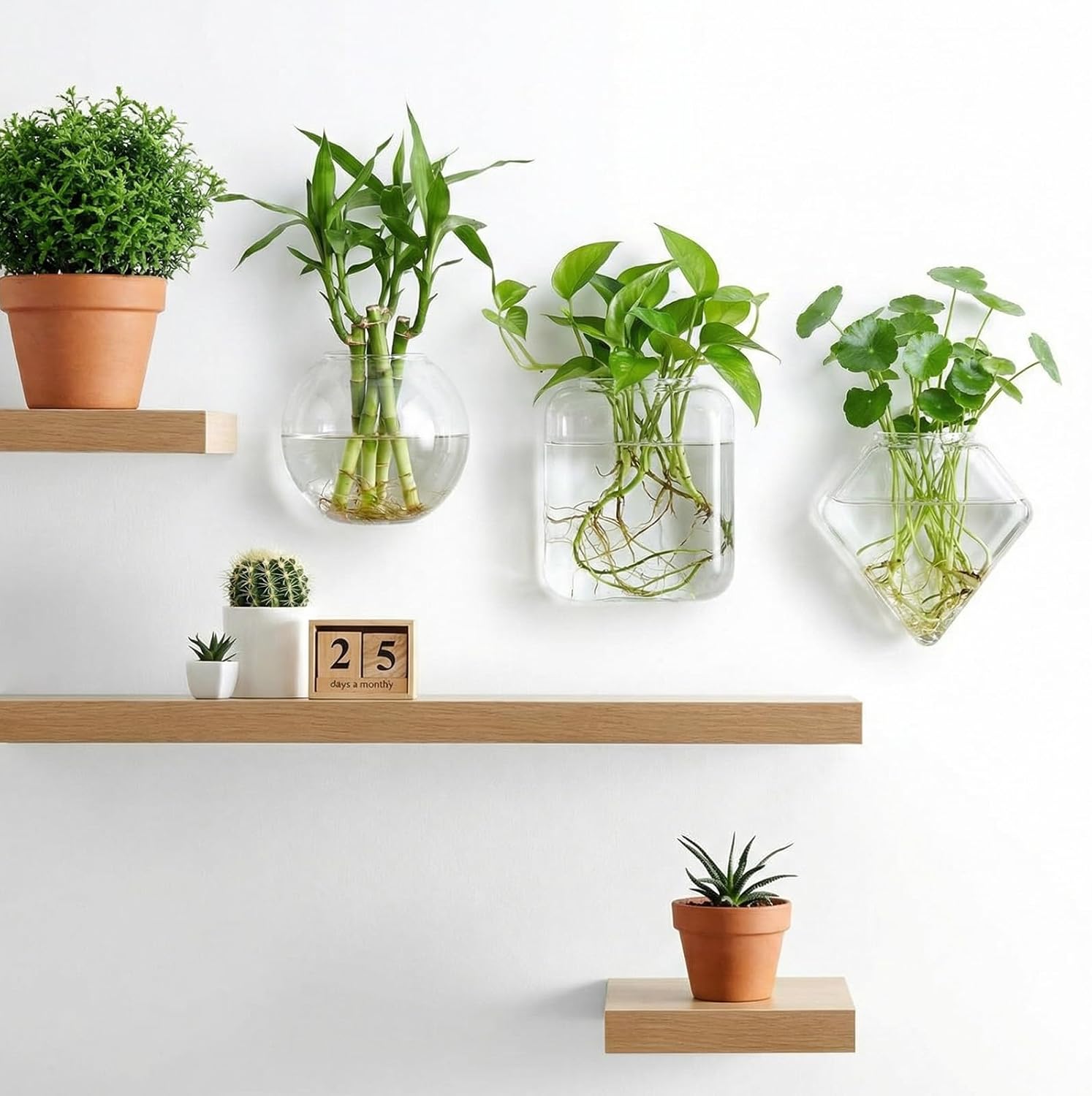 Features: The hooks allow straightforward wall mounting for these hanging propagation vases, clean with mild soap and water for maintenance, they are practical as wall propagation planters for everyday gardening needs. Securely packaged, this collection serves as a thoughtful present for plant lovers, employ these wall vases for decor to build eye-catching arrangements in living areas or kitchens, or establish a functional plant propagation station for cultivating decorative greens. Specifications: Material: glass Color: clear Size: Oblate terrarium about 5.12 x 4.72 inches/ 13 x 12 cm Hexagonal about 5.12 x 5.12 inches/ 13 x 13 cm Square about 4.72 x 4.33 inches/ 12 x 11 cm Package includes: 6 X Glass Wall Vase Notes: Manual measurement, please allow slight errors on size. The color may exist a slight difference due to different screen displays