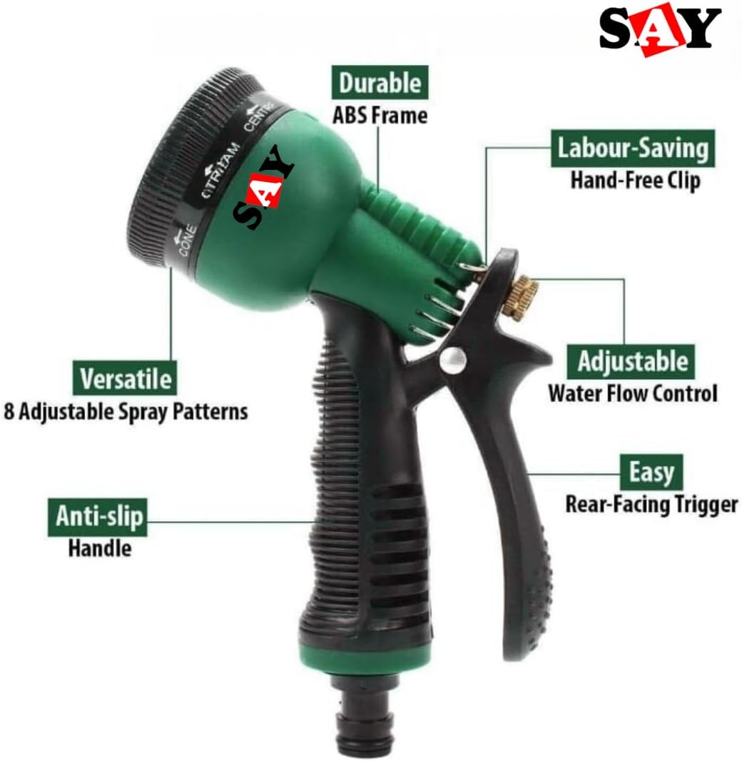 Upgrade your watering and cleaning routine with the SAY 0.5 Inch Garden Hose Pipe, designed for ultimate convenience, durability, and versatility. Crafted from heavy-duty, flexible materials, this garden hose is perfect for everyday use around your home, garden, or car. Whether you’re watering your plants, cleaning your car, or washing outdoor furniture, this hose provides reliable water flow without kinks or leaks. The set includes an 8-pattern spray gun, giving you complete control over water pressure and spray style. From a gentle shower for delicate flowers to a powerful jet for washing your car, the spray gun adapts to every task effortlessly. The package also includes 3 sturdy clamps and a tap connector, making installation quick, secure, and hassle-free. Designed for longevity, the hose resists wear and tear, UV damage, and extreme temperatures, making it a dependable companion for years. Its vibrant blue color adds a stylish touch to your garden while making it easy to spot. The 0.5-inch diameter ensures a strong water flow without compromising on flexibility, giving you a smooth, tangle-free watering experience every time. Ideal for homeowners, gardening enthusiasts, and car lovers alike, the SAY Garden Hose Pipe is a versatile, all-in-one solution for your outdoor water needs. Transform your watering and cleaning tasks into a stress-free and enjoyable experience with this premium garden hose kit.