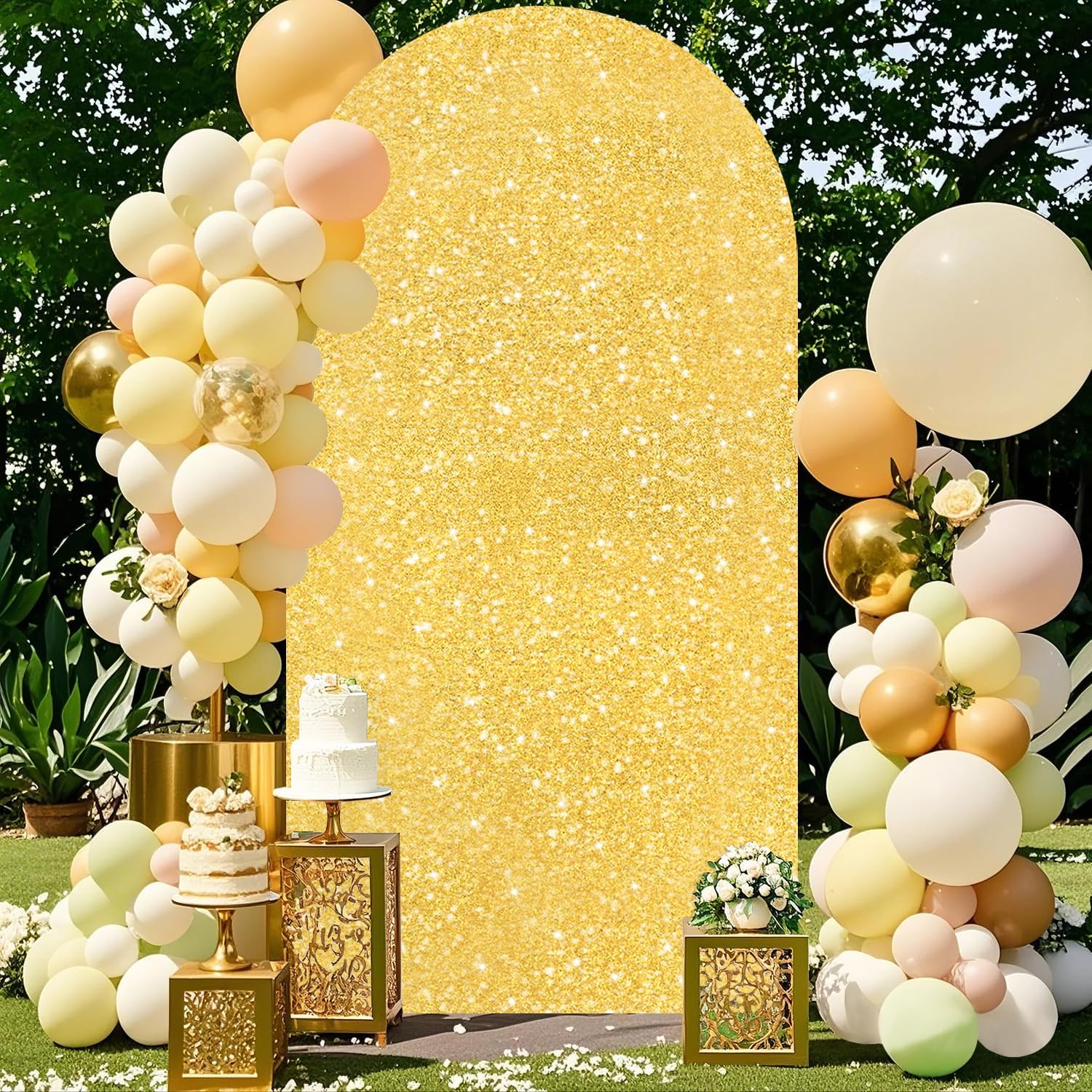 | BuiltIn Media | chiara backdrop cover, gold arch backdrop cover, gold arch cover, gold arch covers, gold backdrop covers arch spandex |
