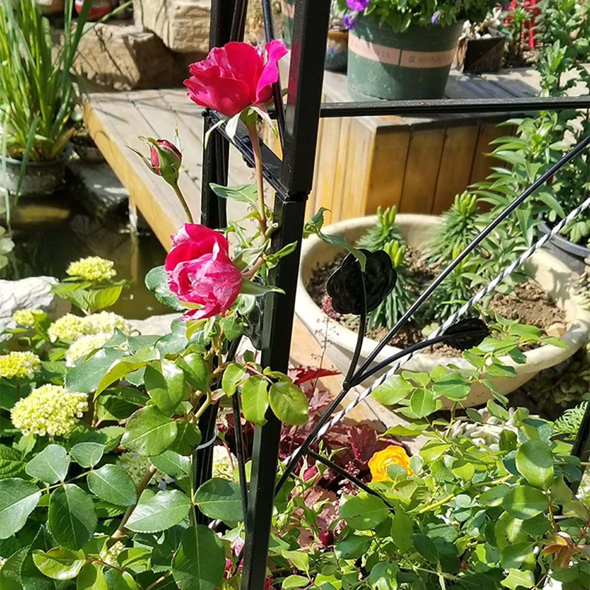 Garden plant half arch flower stand Fixing method: insert the soil to fix Product function: easy to install and disassemble Training climbing plants and vines Robust tubular steel frame structure, long-term use The new design style is good garden and backyard decoration Outdoor metal garden arched garden arbor for climbing plants Outdoor garden lawn backyard is good for training your climbing plants to grow through arbor. In addition, the arch can also perfectly decorate your garden, because the arch is very suitable for supporting light climbing plants and vines, thus creating a beautiful entrance to your garden. The arch is made of a lightweight and durable tubular structure with weather resistance. Although it is lightweight, it can be used for a long time.